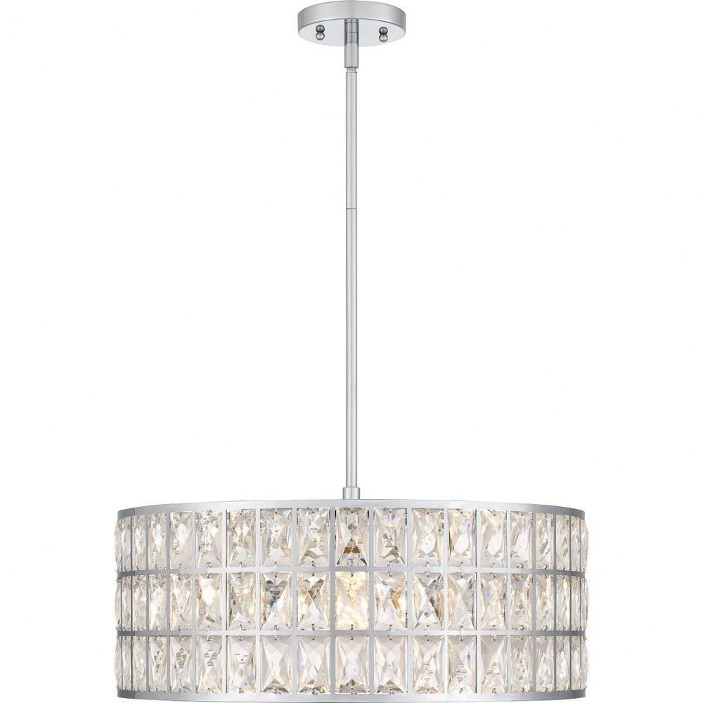 Add instant mystique and luxury to your home with Gibson. Clear beveled crystal shades create a dazzling play of shadow and light, paired with your choice of a matte black or polished chrome finish. Choose from a variety of style options in this glamourous collection - available as a flush mount, pendant light, or bath light.