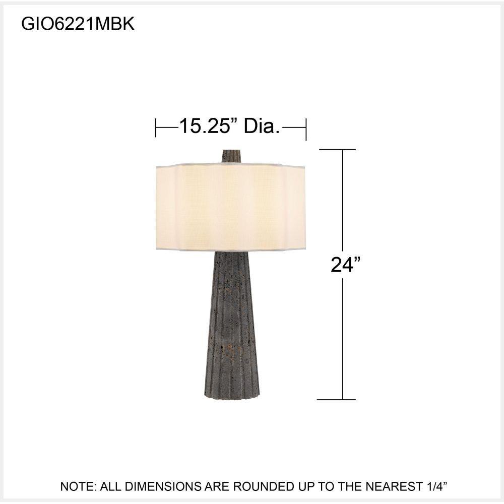 A sculptural beauty with quiet strength, the Gio Table Lamp pairs bold design with soft elegance. Its fluted travertine base in matte black offers grounded sophistication, while the uniquely shaped fabric shade casts a gentle, ambient glow—like candlelight at dusk. Modern yet timeless, Gio is a striking statement piece that evokes warmth, artistry, and effortless romance in any space.