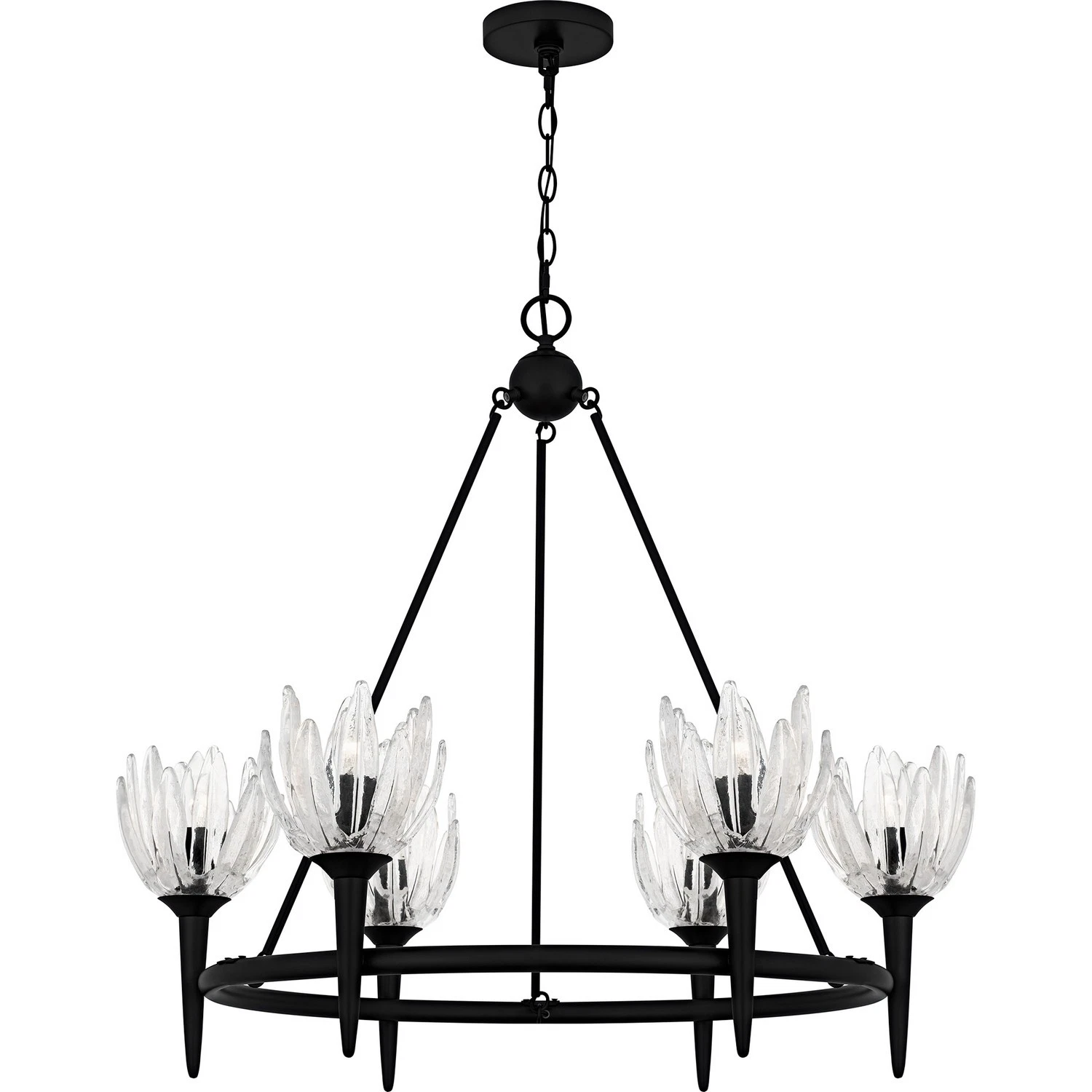 Shimmer and shine with the Transitional Matte Black Chandelier from the Shea Collection, a remarkable product, from a well known brand, Quoizel, standout item from Shea collection and with a Matte Black elegant finish.