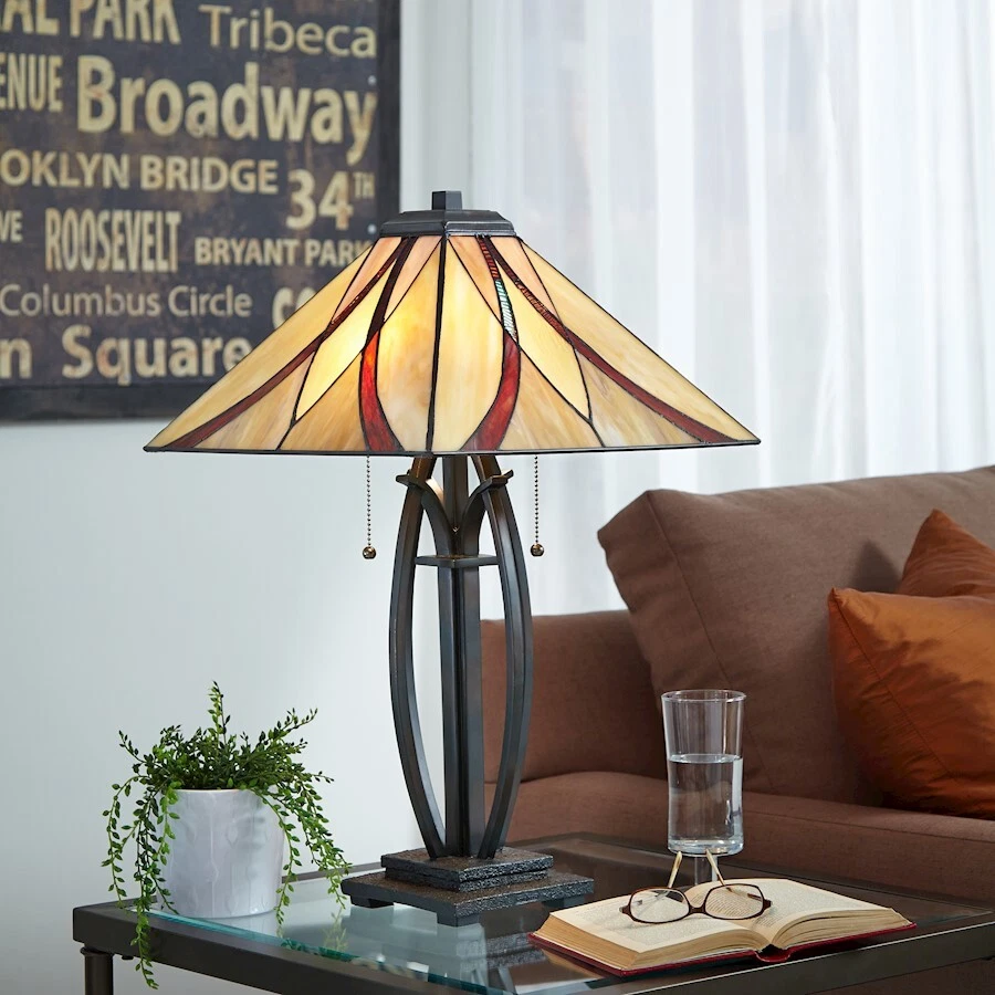 Quoizel 2 Light Asheville Tiffany Table Lamp in Valiant Bronze - TF1180TVA