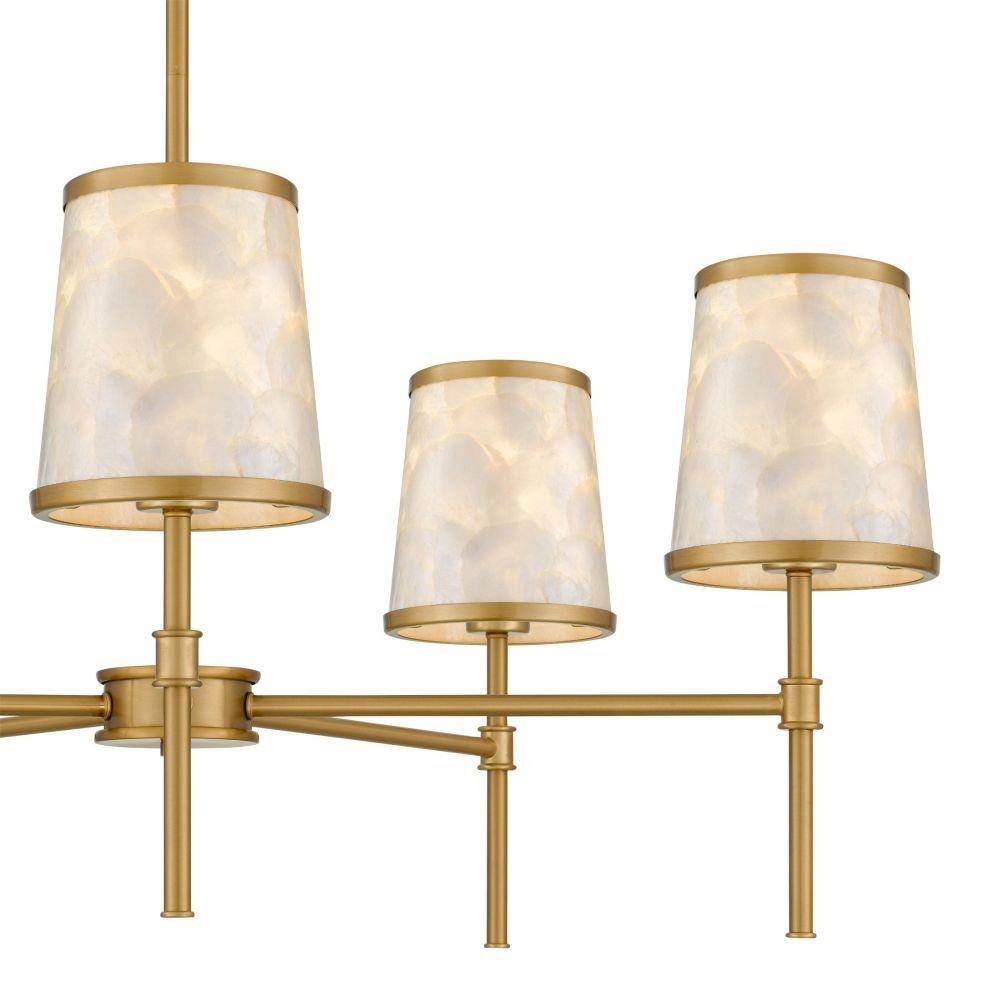 With its airy elegance and luminous natural elements, the Windley Collection brings a breath of softness to structured modern design. Each fixture pairs a warm brushed gold finish with hand-layered capiz shell shades, casting a gentle, ocean-kissed glow. Whether it’s the graceful chandelier, the versatile semi-flush mount that converts to a pendant, or the sculptural wall sconce, Windley transforms any space into a serene sanctuary.