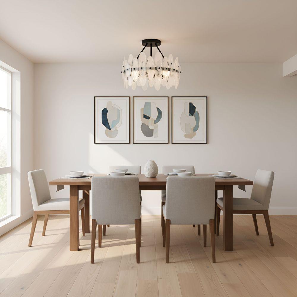 Like sunlight dancing on rippling water, Abigail brings a delicate shimmer to any space. Layered with glass discs that catch and reflect the light, this fixture evokes a sense of quiet romance and timeless elegance. Thoughtfully designed for versatility, the front glass pieces can be styled vertically or horizontally to suit your personal aesthetic—offering a touch of customization to your lighting design. Whether finished in warm brushed gold for a soft, golden glow or in matte black for a striking modern contrast, Abigail is made to enchant. Ideal for bedrooms, entryways, or intimate dining areas, it’s a luminous expression of grace and sophistication.