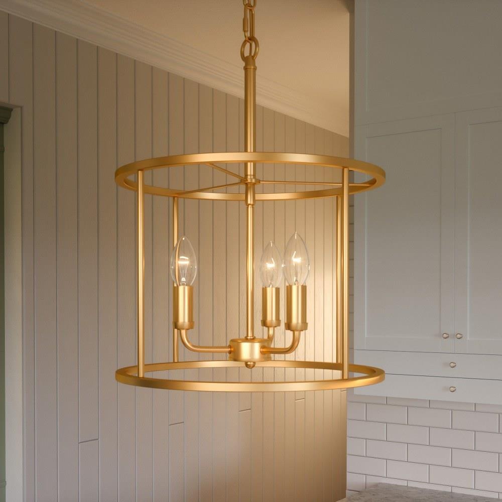 Add beautiful light to smaller spaces with the Abner series of vanity lights and pendants, featuring clear hammered glass in a range of finishes like aged brass, matte black, and polished chrome. Proof that clean, simple design is impactful, this versatile style would work well in a kitchen, bath, or home office. Durable steel construction is built to last and offers a clean, polished look Includes all required hardware, template, and instructions for easy installation ETL Listed for use in damp locations Fixture is dimmable when paired with dimming-compatible bulbs Requires 3 60-watt candelabra base bulbs (sold separately).