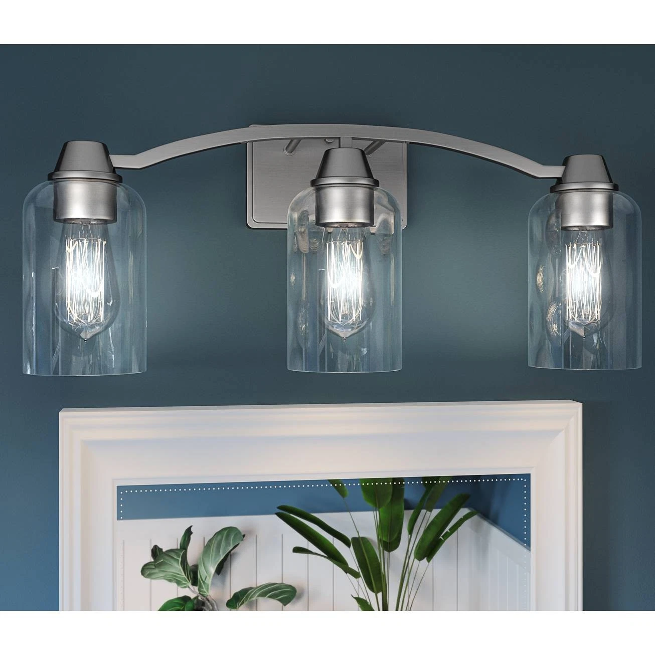 Create a pleasant and well-lit bathroom area with the Acacia collection of bathroom wall lights from Quoizel. Three clear water glass shades allow light to spread unfiltered throughout your space. Contemporary three-light Acacia bathroom wall light, from Quoizel.