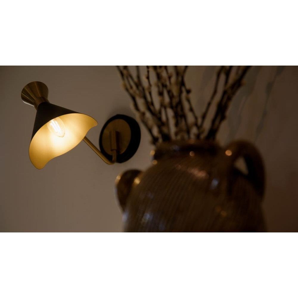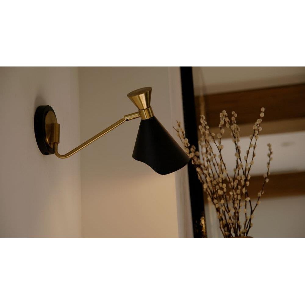 The Arden collection is a striking blend of modern design and functional versatility. The combination of matte black and gold finishes creates a visually appealing contrast, perfectly highlighting the geometric shape. The metal shades rotate in and out, but they can also be turned to face up and down to provide both ambient and task lighting options. Arden is available as a semi-flush mount, wall sconce, or chandelier.
