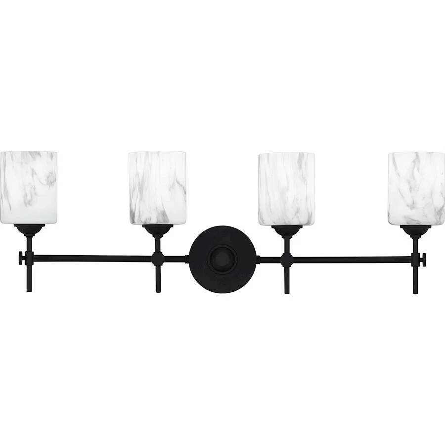 Quoizel Aria 4 Light Bath Light, Matte Black/Marble Glass - ARI8631MBK