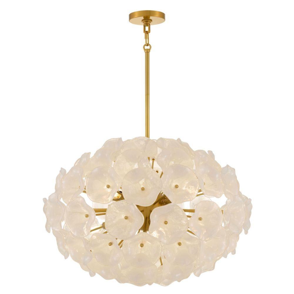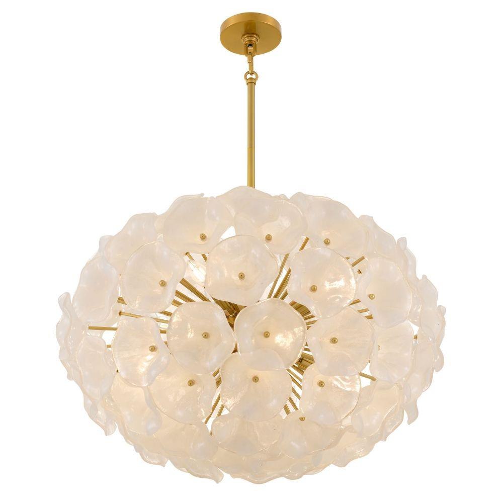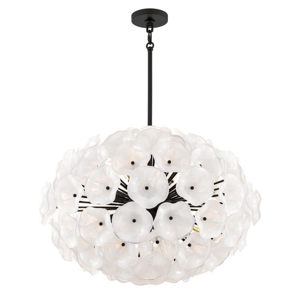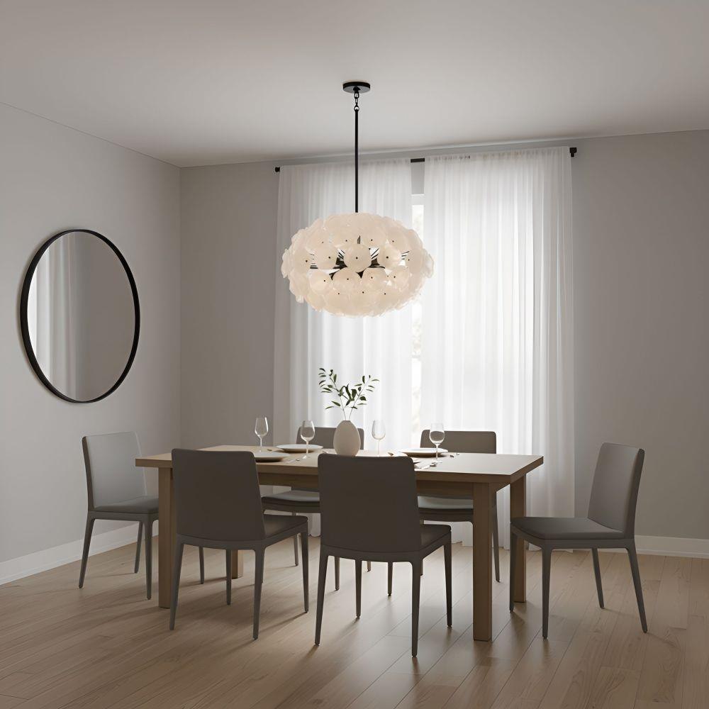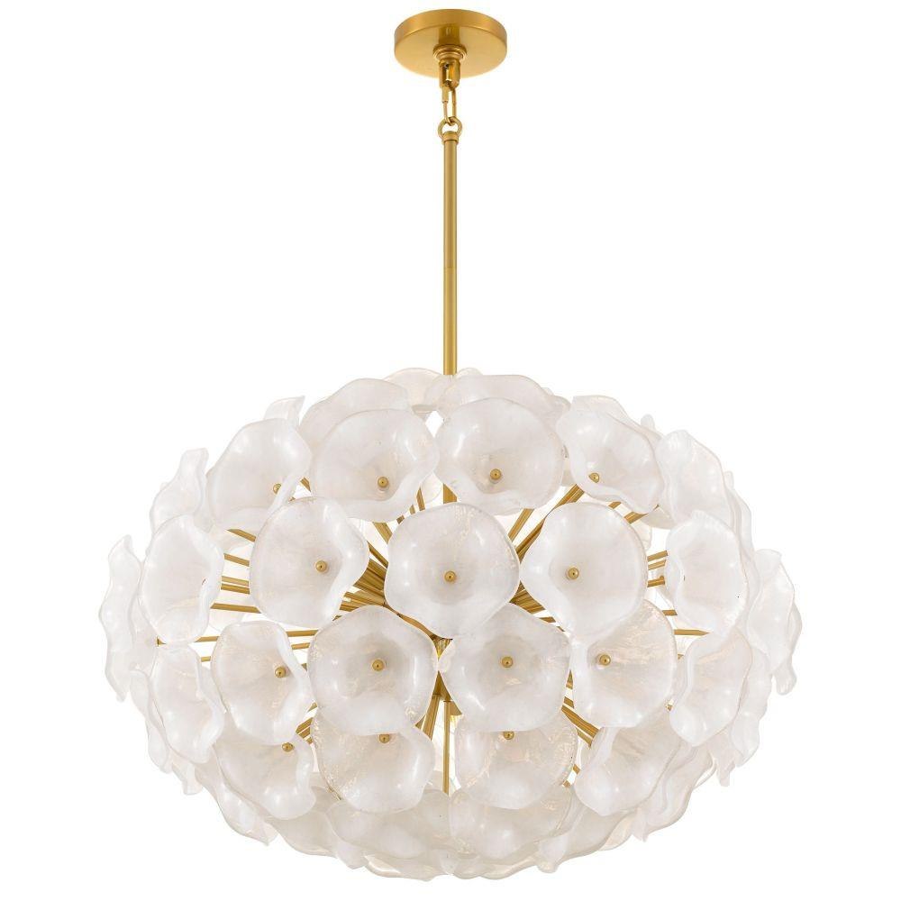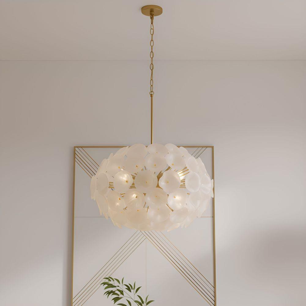 • Sculpted white glass shades mimic delicate petals in bloom, casting a warm, ambient glow with soft floral elegance