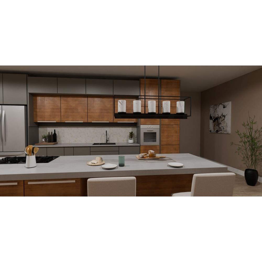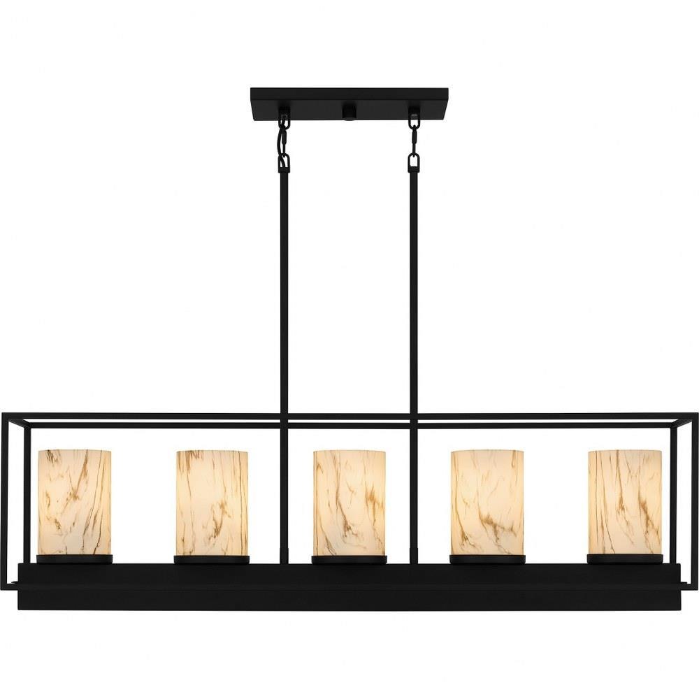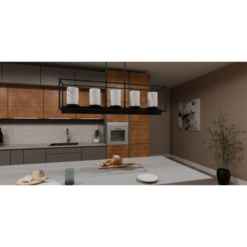 The Bentley linear chandelier makes a perfect statement over your kitchen island or dining room table. The simple matte black frame is accentuated by marble glass shades, adding a hint of glamour and contrast to the sleek design. With its versatile styling, the Bentley island light is a great addition to any transitional or minimalist style interior.