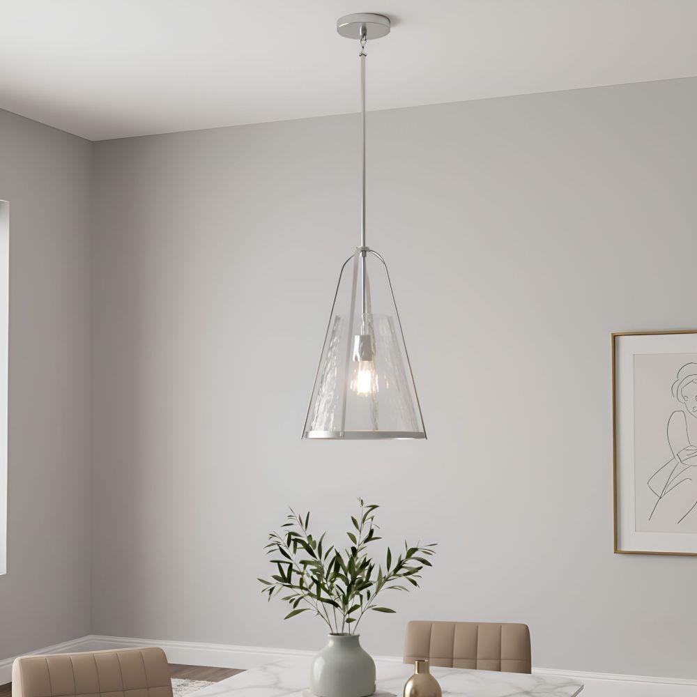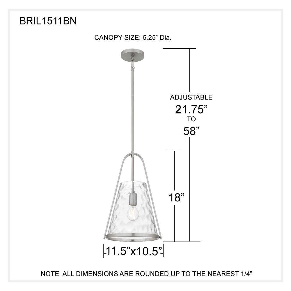 Delicate yet striking, the Briley Mini Pendant brings a whisper of transitional romance to modern design. Offered in either a sleek matte black or timeless brushed nickel finish, Briley’s open frame cradles a clear water glass shade that dances with soft ripples of light—like sunlight shimmering across a quiet stream. Its graceful silhouette and artisanal texture create a warm, inviting glow, perfect for kitchens, hallways, or any space where beauty lives in the details. Briley is a celebration of light, movement, and effortless charm.