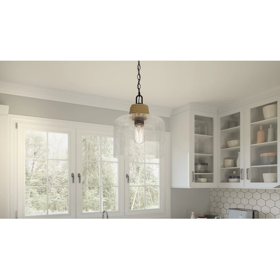 Quoizel Baltic 1 Light Mini Pendant, Matte Black/Clear Water - BTC1512MBK