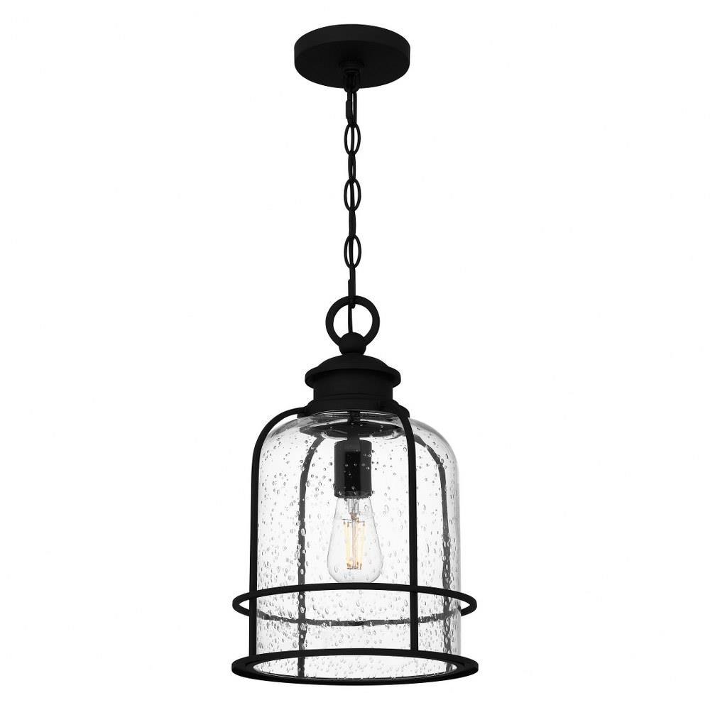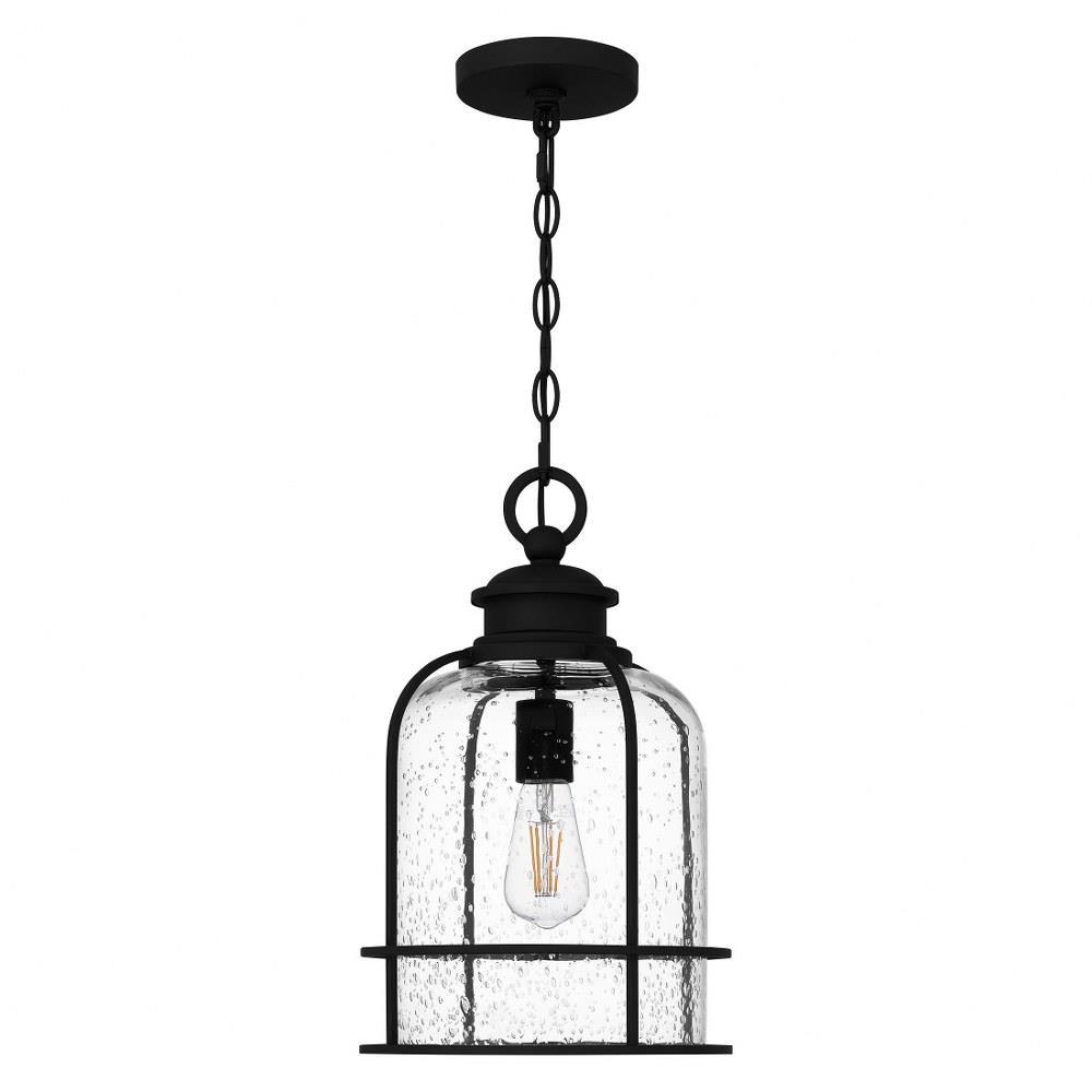 The Bowles mini pendant light gives a nod to both industrial and coastal design. The stately silhouette features clean lines, intricate hook detailing, and exposed bulb sockets - all in a classic Earth Black finish. Clear seedy glass completes the look, offering visual intrigue and style. Bowles is also available as an outdoor hanging lantern or in multiple sizes of wall light, perfect for illuminating a front porch or landscape.