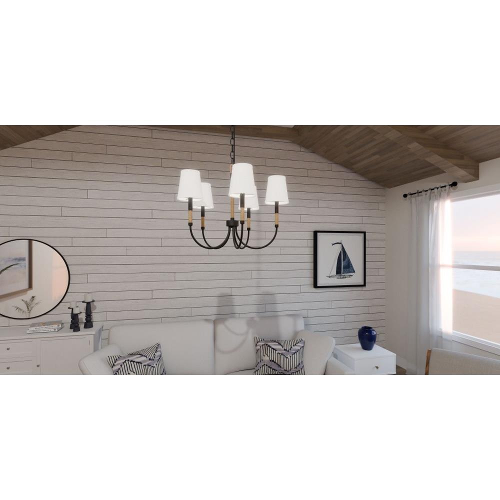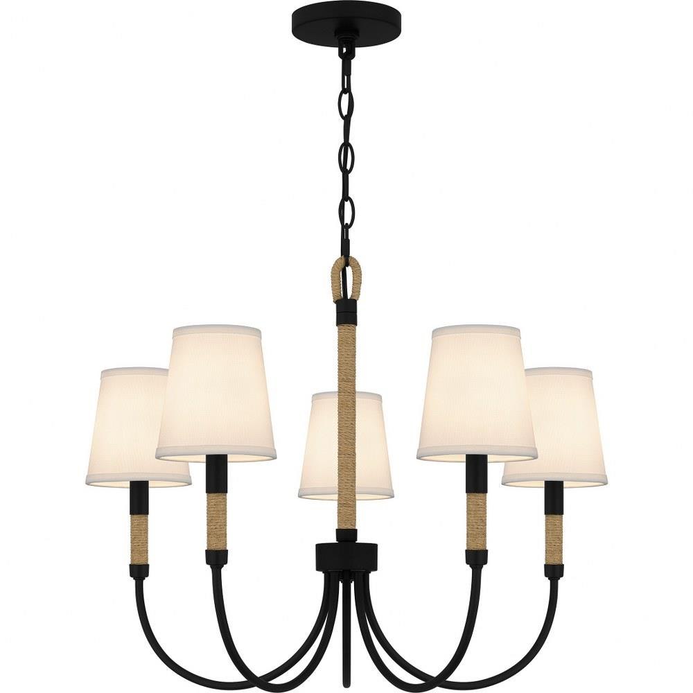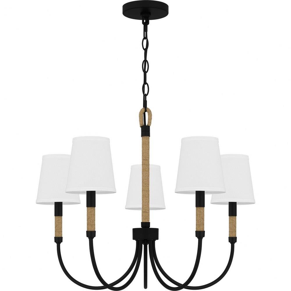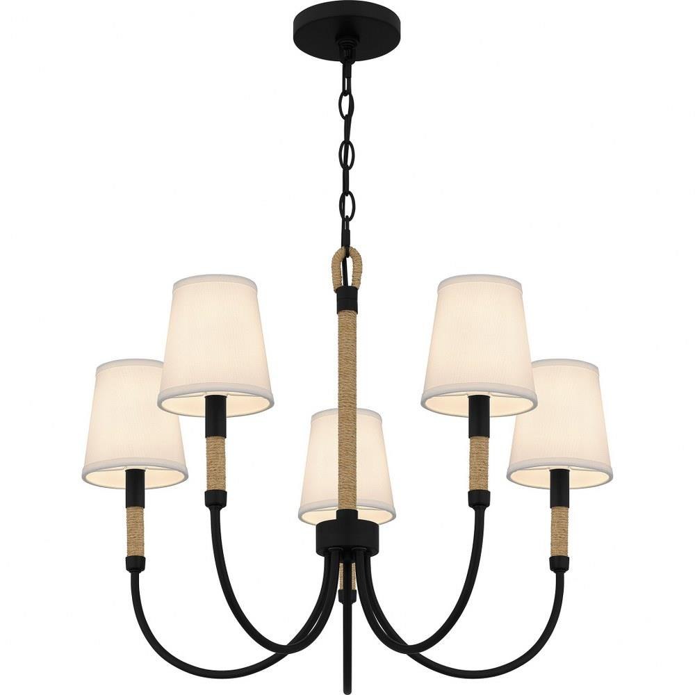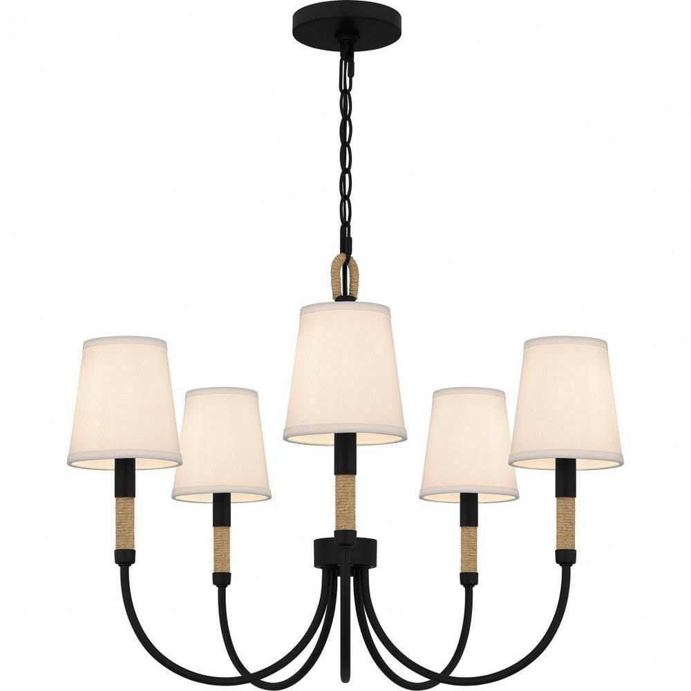 A new addition to the Quoizel Naturals collection, Bayside embodies coastal style with its smart use of natural elements. The sleek matte black frame is accentuated by white fabric shades and natural rope details, creating a soft and beautiful contrast. Available as a chandelier or wall sconce, Bayside makes a wonderful addition to any living space.