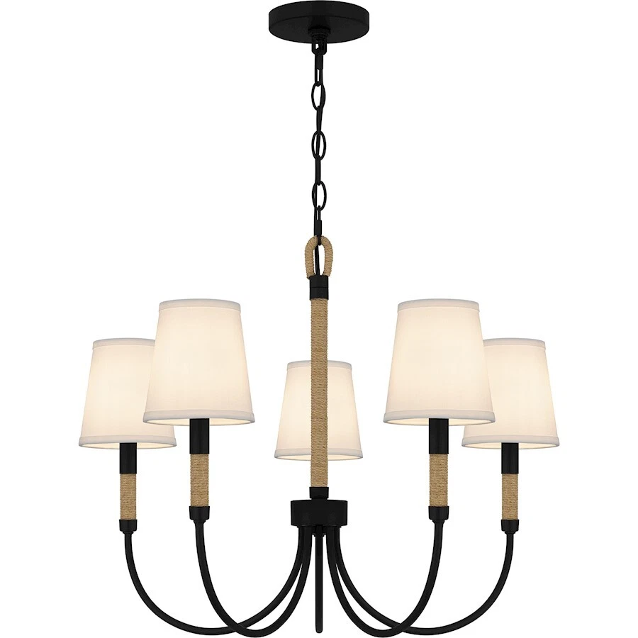 Quoizel Bayside 5 Light Chandelier, Matte Black/White Fabric - BYL5025MBK