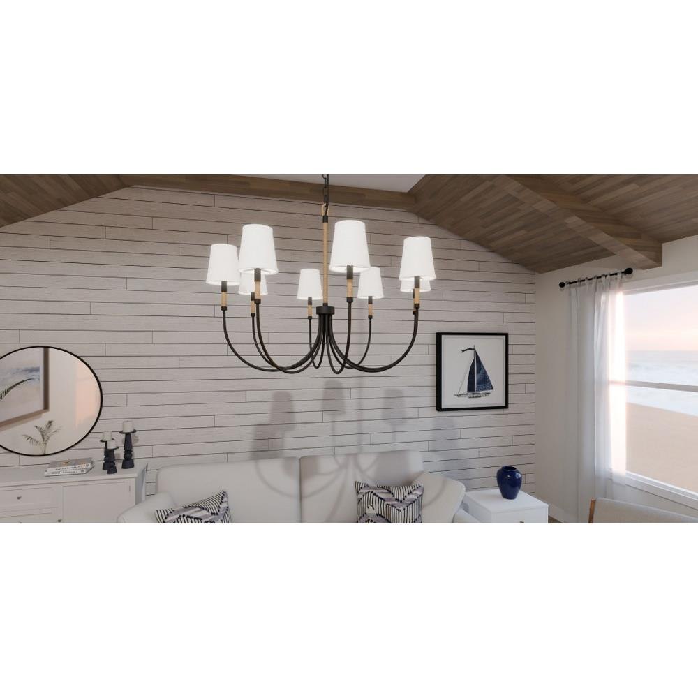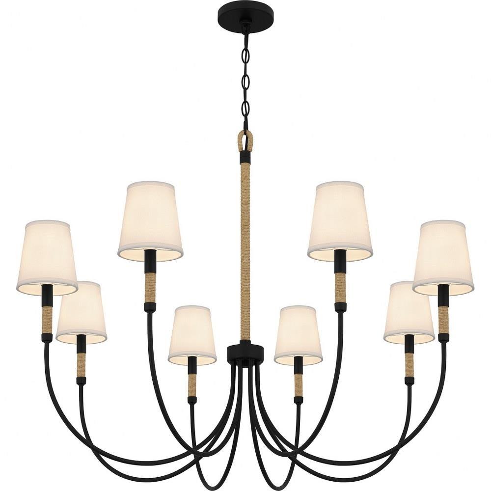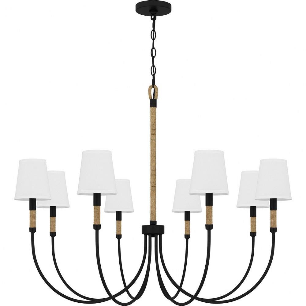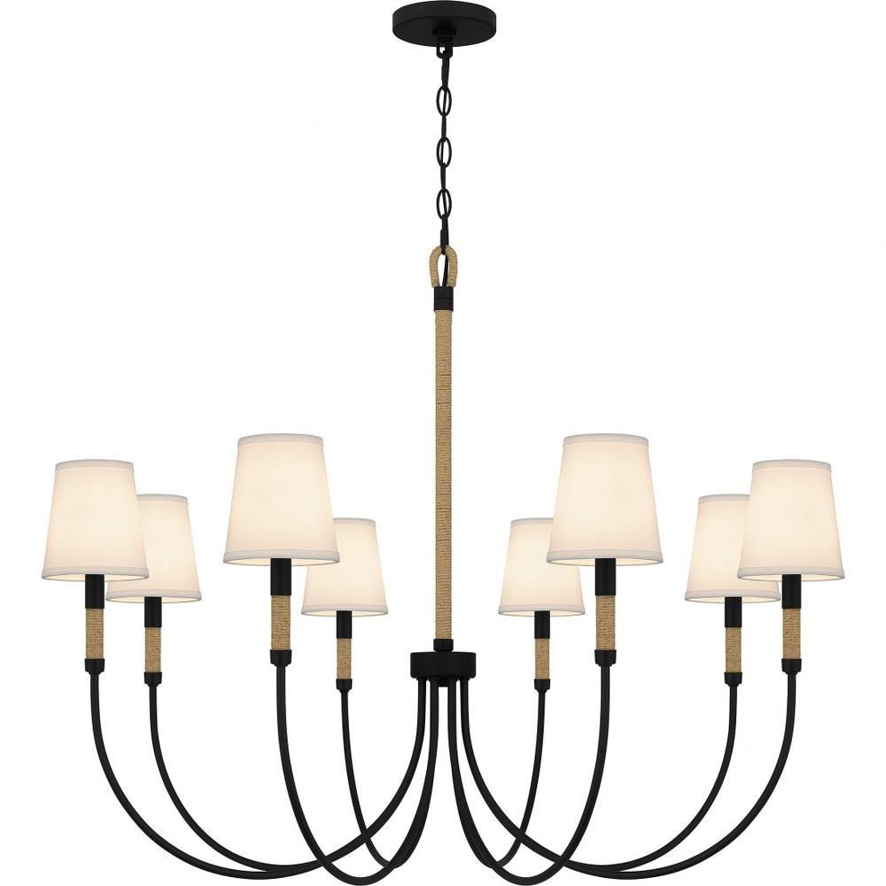 A new addition to the Quoizel Naturals collection, Bayside embodies coastal style with its smart use of natural elements. The sleek matte black frame is accentuated by white fabric shades and natural rope details, creating a soft and beautiful contrast. Available as a chandelier or wall sconce, Bayside makes a wonderful addition to any living space.