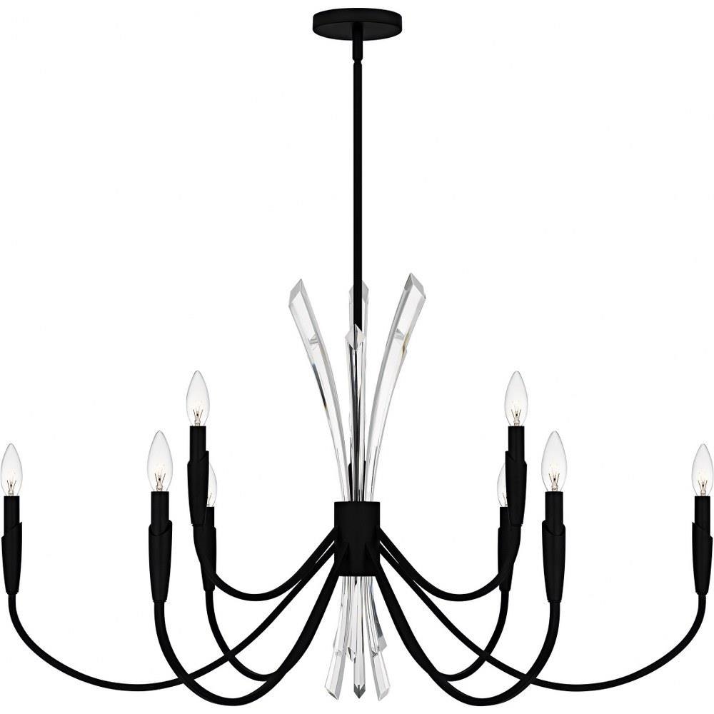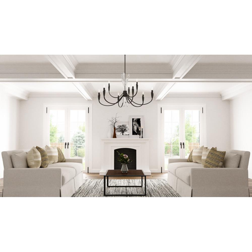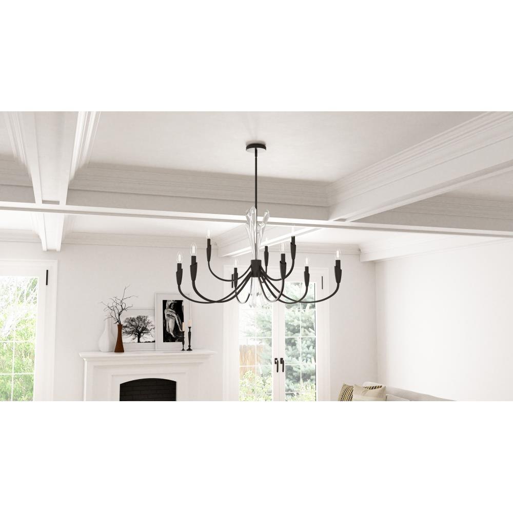 • Matte black finish highlights the sweeping curves and adds subtle style to the classic chandelier design