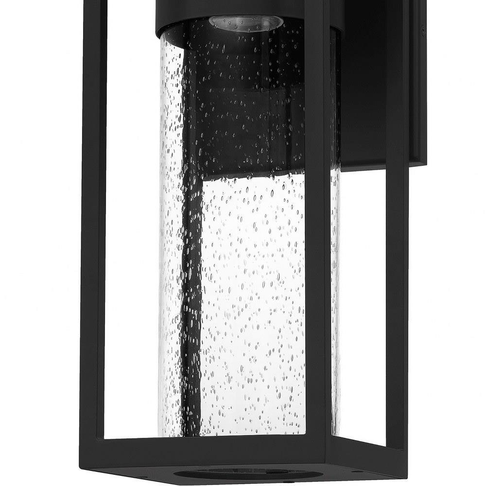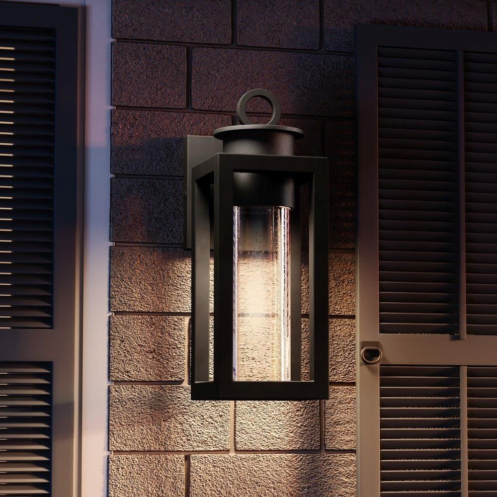 Donegal's classic silhouette features an updated design that combines traditional style with industrial elements. A clear seeded glass cylinder surrounds the wall lantern's light source and directs the light for ideal ambient light. A durable Matte Black finish completes the look and makes for an easy addition to the outside of your home. Matte black finish Clear seeded glass shades Durable aluminum construction Uses (1) 7-watt halogen bulb (sold separately) Ideal for transitional, traditional, industrial settings ETL Listed for use in wet locations Includes all required hardware and instructions for easy installation.