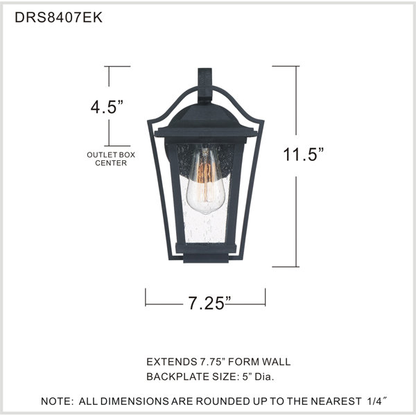 Greet friends and family with a touch of modern charm with this understated outdoor wall lantern, an ideal option for a covered porch or any damp location. Featuring a traditional tapered silhouette, this light fixture comes with a handy wall mount so you can easily install it outside your door and features one light encased within a seeded glass shade. This luminary boasts an earth black finish that works well with a variety of neutral color palettes, and it accommodates one medium-base light bulb (not included). Plus, its dimmable feature lets you create a mood according to your design preferences.