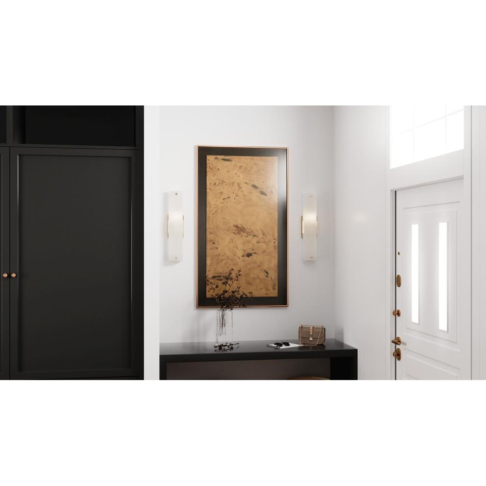Finnegan wall sconces infuse modern style into any space with their sleek design and etched glass shades. Finished in a sophisticated bronze gold, these sconces offer a touch of elegance and contemporary flair. Versatile in function, Finnegan can be used as a vanity light or wall sconce, making these lights ideal for placement on either side of a vanity mirror or above the mirror. Whether enhancing your bathroom vanity or adding a stylish touch to any wall, Finnegan provides both functional lighting and a refined aesthetic