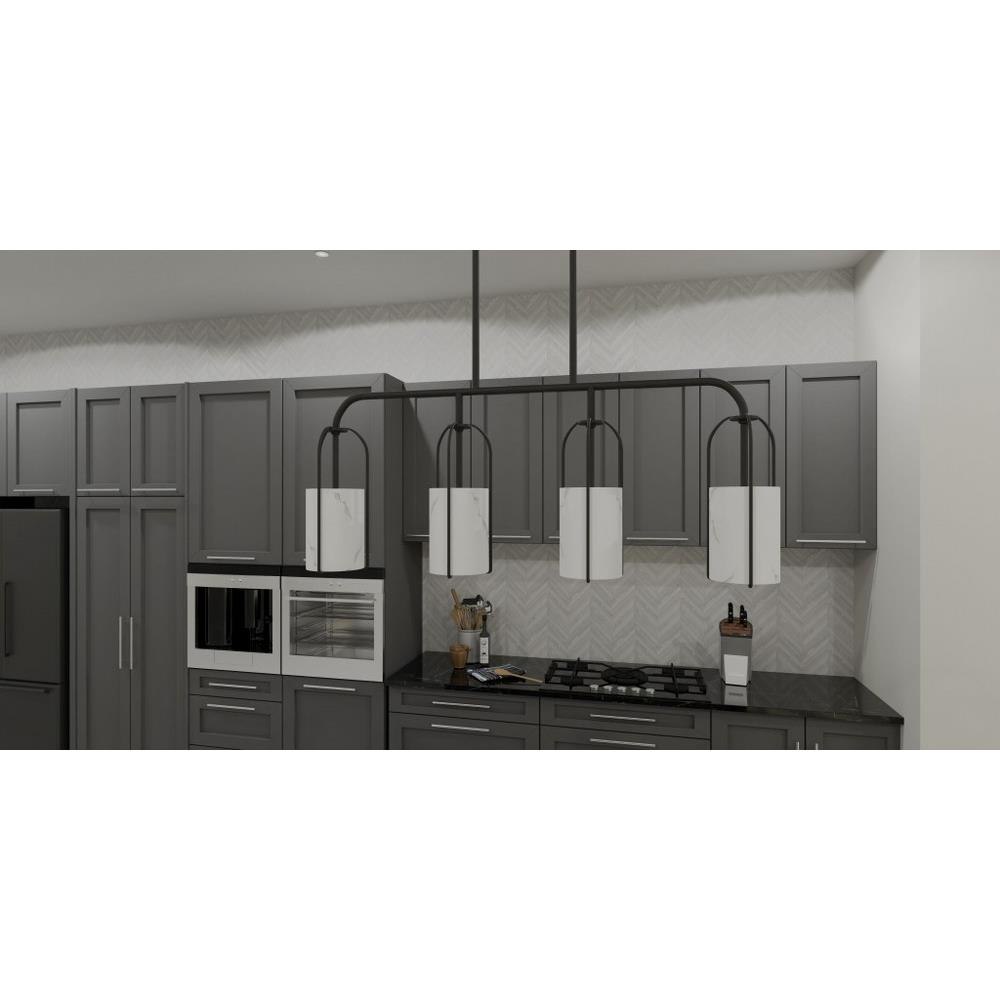Matte black and faux marble make a perfect pairing in the Fairbanks collection. Slender black lines delicately frame the white alabaster glass shades, adding a hint of luxury to the transitional design. Fairbanks is a versatile collection - available as a mini pendant light, linear island light, or wall sconce.