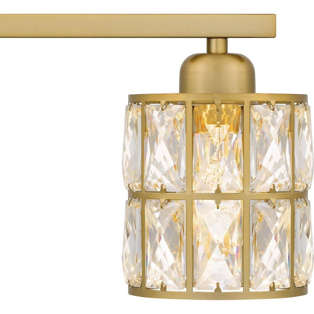 Add instant mystique and luxury above a bathroom vanity with the Gibson bath light. Clear beveled crystal shades create a dazzling play of shadow and light, paired with your choice of a matte black, polished chrome, or aged brass finish. Choose from a variety of size options and configure this glamorous fixture with shades facing up or down depending on your lighting needs.