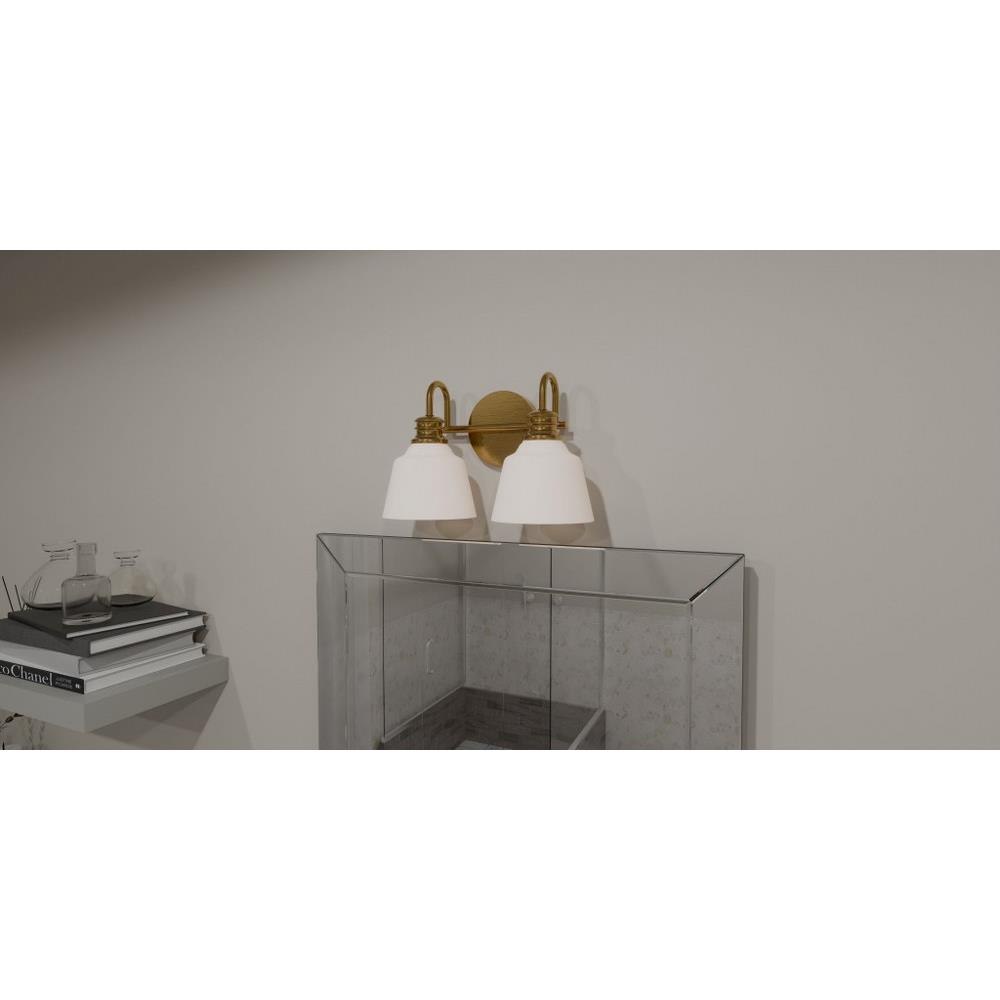 Upgrade any bathroom vanity with the Hinton bath light. Opal etched glass shades cast a soft and ambient glow, setting the mood for an intimate home spa experience. This versatile and traditional design is finished in aged brass for added shine. Configure Hinton with shades facing up or down depending on your lighting needs.