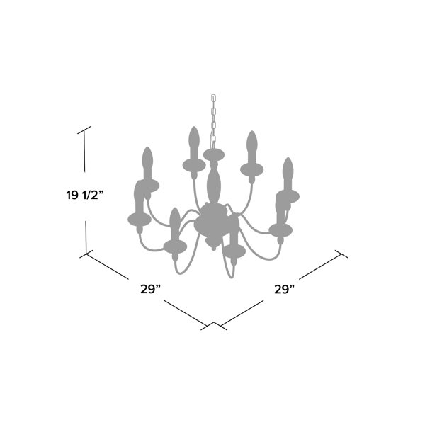This 8-light chandelier brings traditional style to your dining room, living room, or bedroom. It's made from metal with a distressed brown finish and features a turned central down rod, and eight curved arms for a classic silhouette. At the end of each arm, there is a candelabra base with a 60W candle bulb (not included) that illuminates your space with a soft glow. We love that this pendant can be installed on a dimmer switch, so you'll always have the right amount of light. Plus, it hangs from an adjustable chain and has a sloped ceiling-compatible canopy.