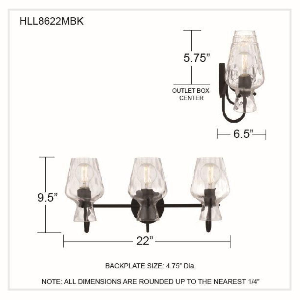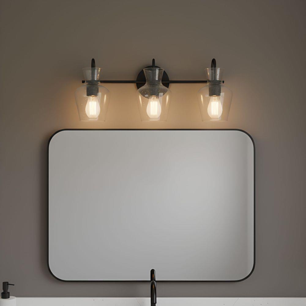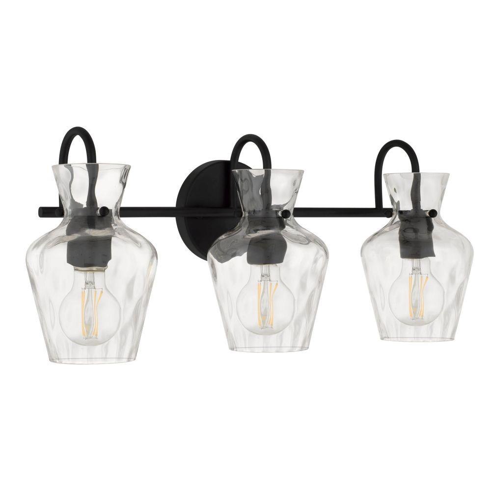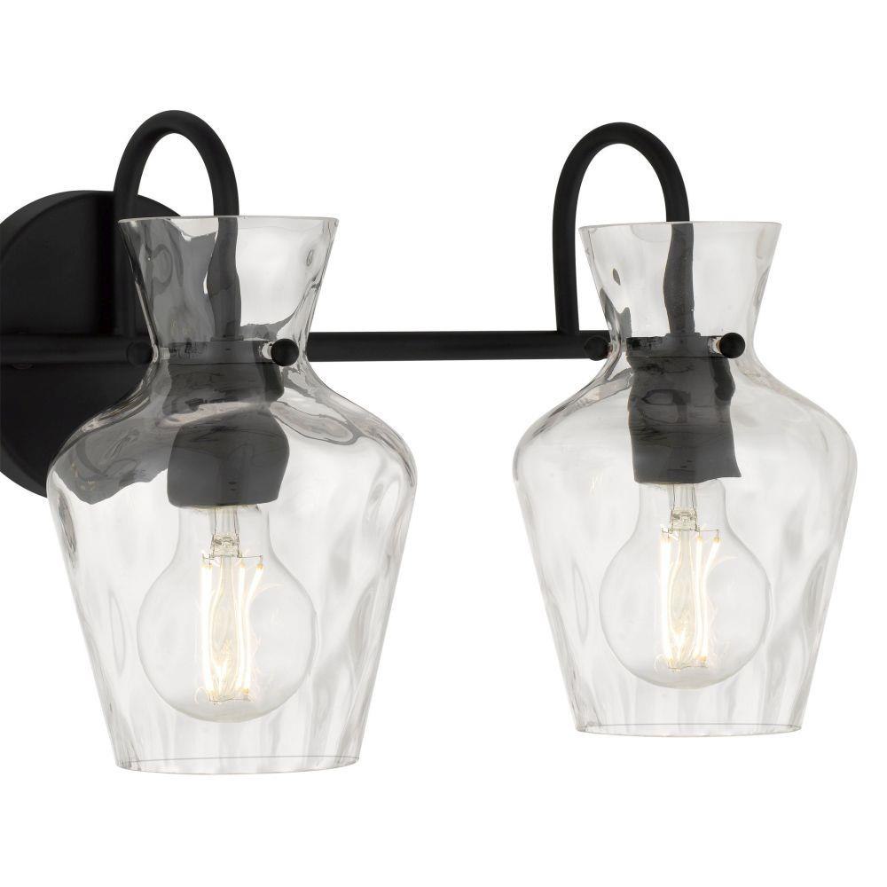 The Hollis vanity light blends modern simplicity with artisanal charm. Its matte black finish provides a sleek, timeless backdrop, while the clear hammered glass shades shimmer like water touched by sunlight. Each curve of glass adds texture and depth, creating a play of light that feels warm and inviting. Perfect for brightening a bathroom with elegance and ease, Hollis turns everyday routines into moments of quiet beauty.