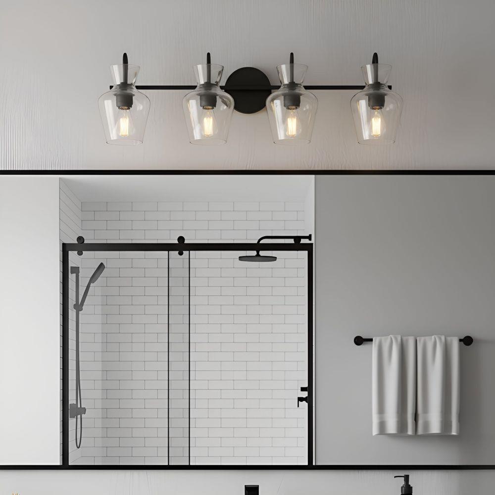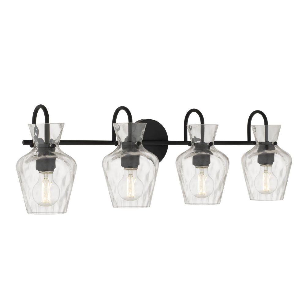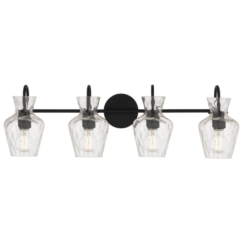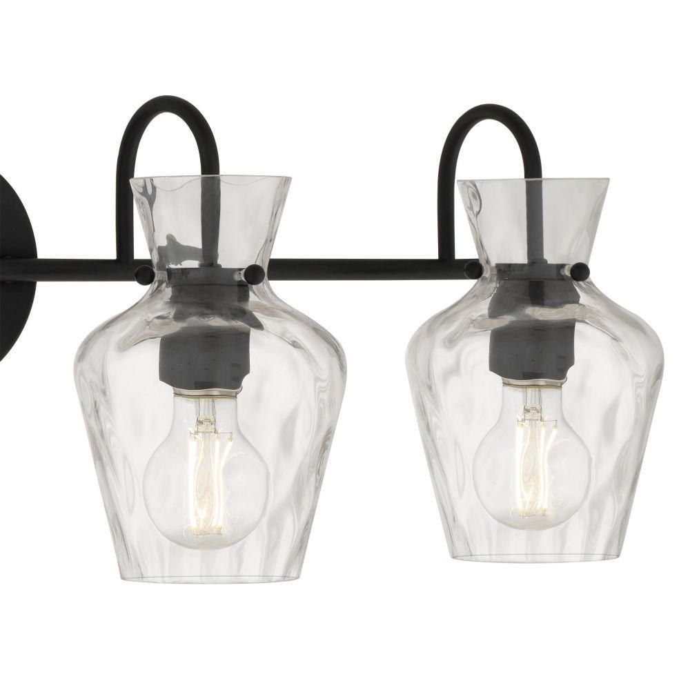 The Hollis vanity light blends modern simplicity with artisanal charm. Its matte black finish provides a sleek, timeless backdrop, while the clear hammered glass shades shimmer like water touched by sunlight. Each curve of glass adds texture and depth, creating a play of light that feels warm and inviting. Perfect for brightening a bathroom with elegance and ease, Hollis turns everyday routines into moments of quiet beauty.