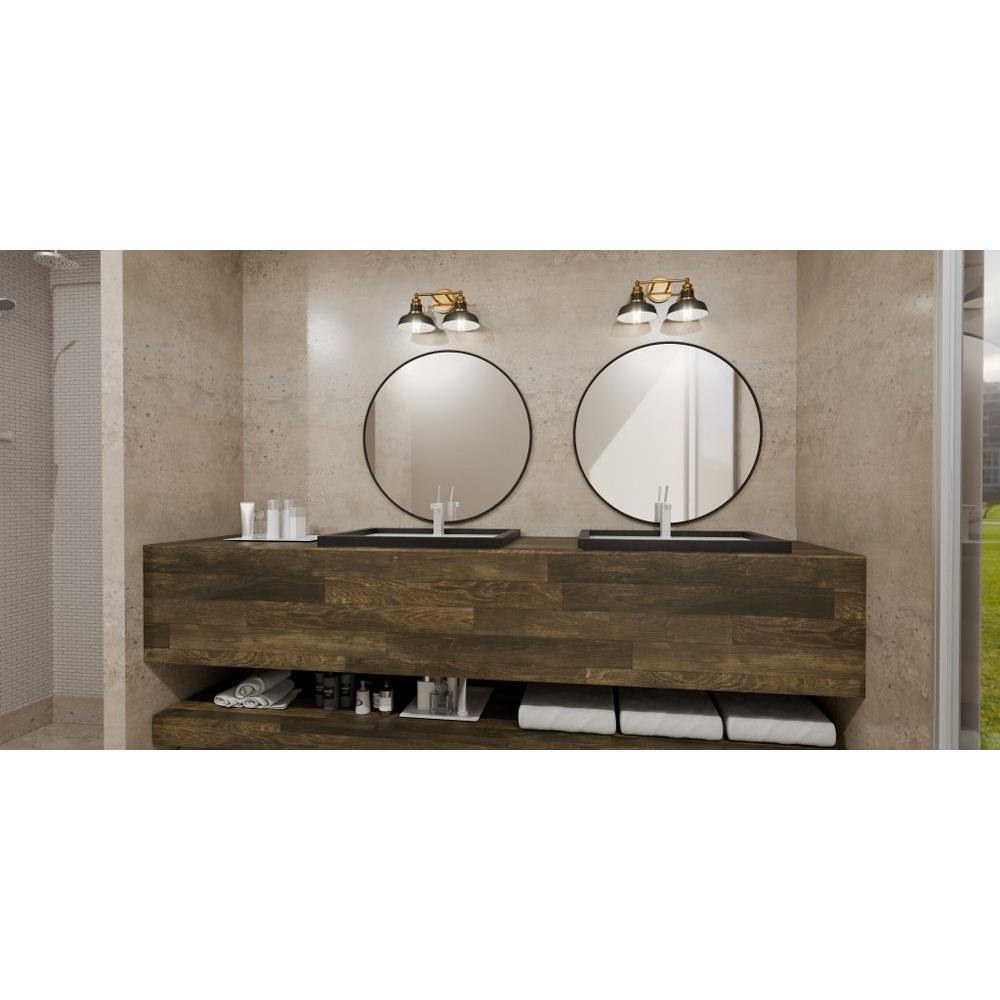 The traditional style of the Huxley bath light collection features elements of industrial design. Matte black metal shades are accentuated by an aged brass finish for a classic black and gold pairing. Choose from a variety of size options in this versatile collection to personalize your bathroom vanity lighting today.