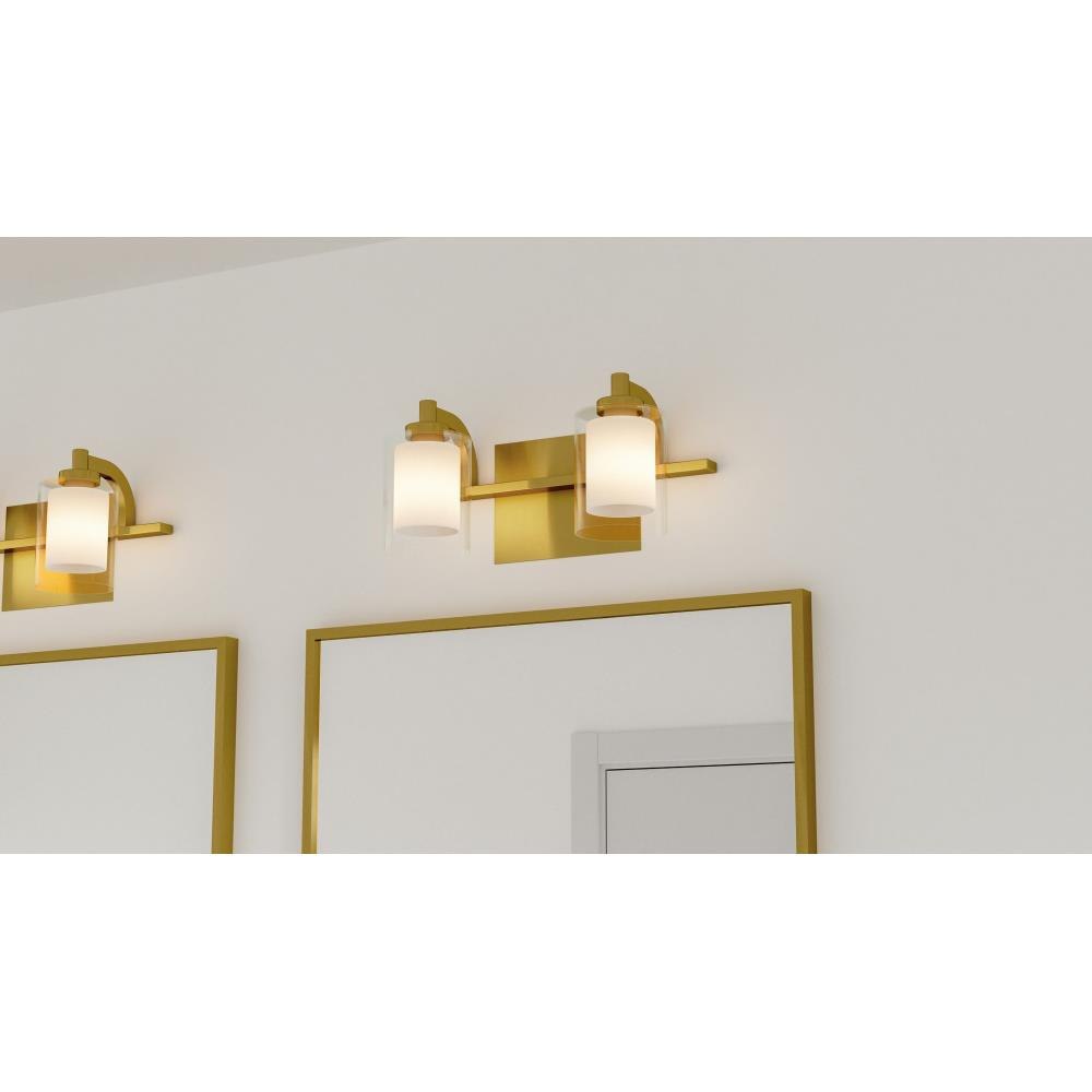 This modern posh wall sconce and vanity light collection features a simplistic design with several classic finish options: choose from brushed nickel, polished chrome, or brushed gold. The inner heavy glass is sand blasted inside and encased within outer clear glass shades for a sophisticated and stunning look. This unique illumination effect provides a spa-like illumination, creating a perfect home bathroom ambiance. Install Kolt with shades facing up or down to customize to your desired setting.