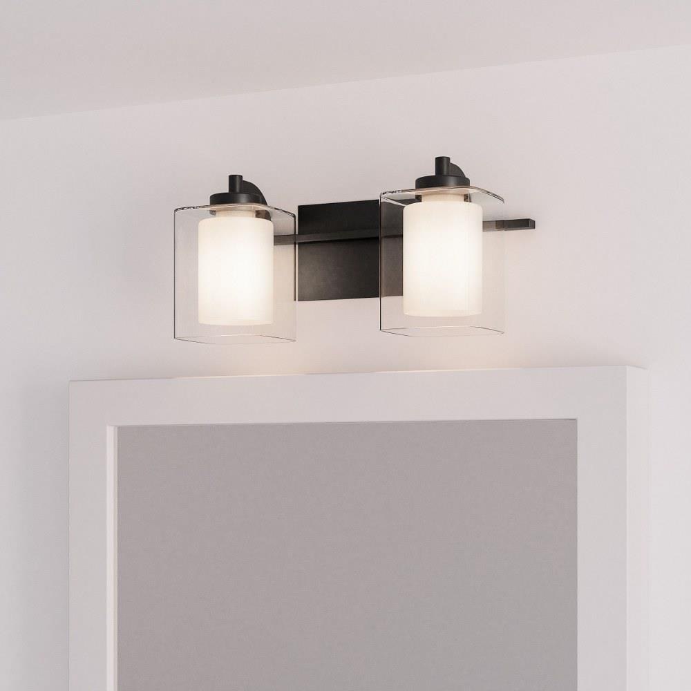 This modern posh wall sconce and vanity light collection features a simplistic design with four classic finish options: choose from brushed nickel, polished chrome, matte black or western bronze. The inner heavy glass is sand blasted inside and encased within outer clear glass shades for a sophisticated and stunning look. This unique illumination effect provides a spa-like illumination, creating a perfect home bathroom ambiance. Install Kolt with shades facing up or down to customize to your desired setting.