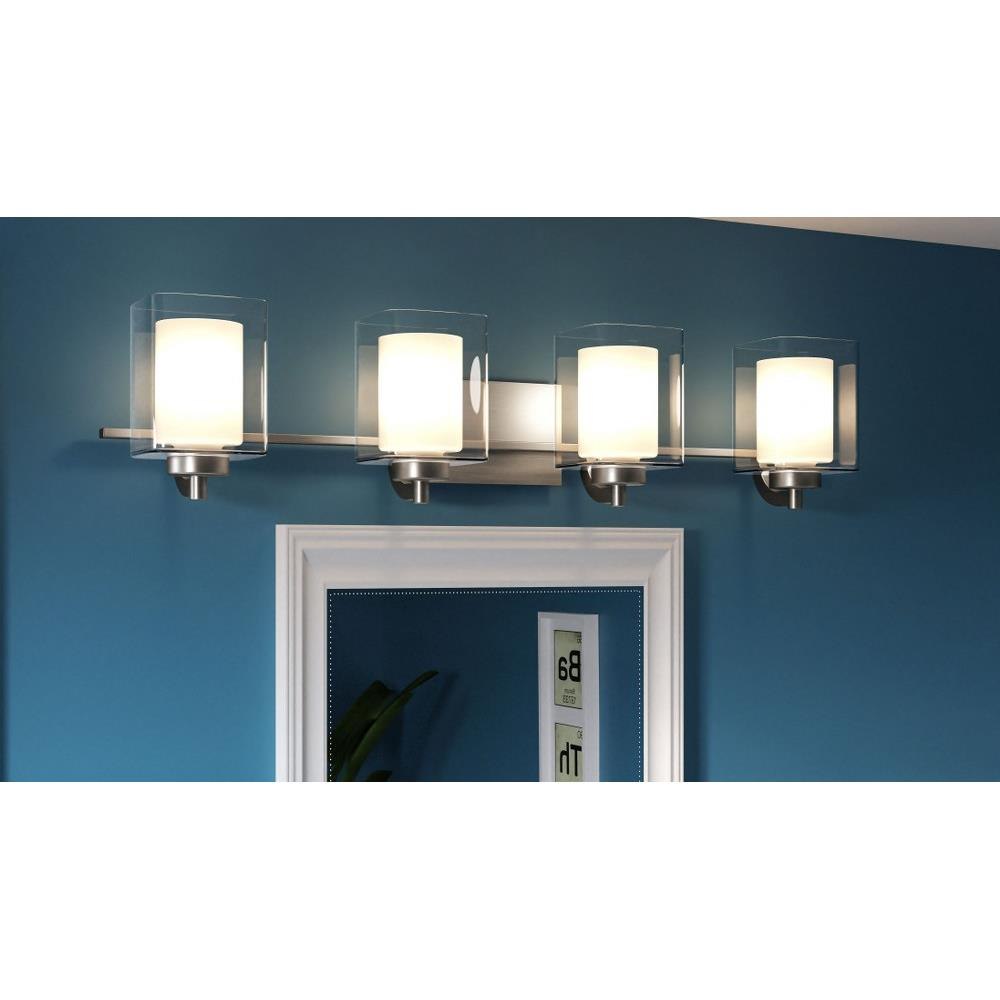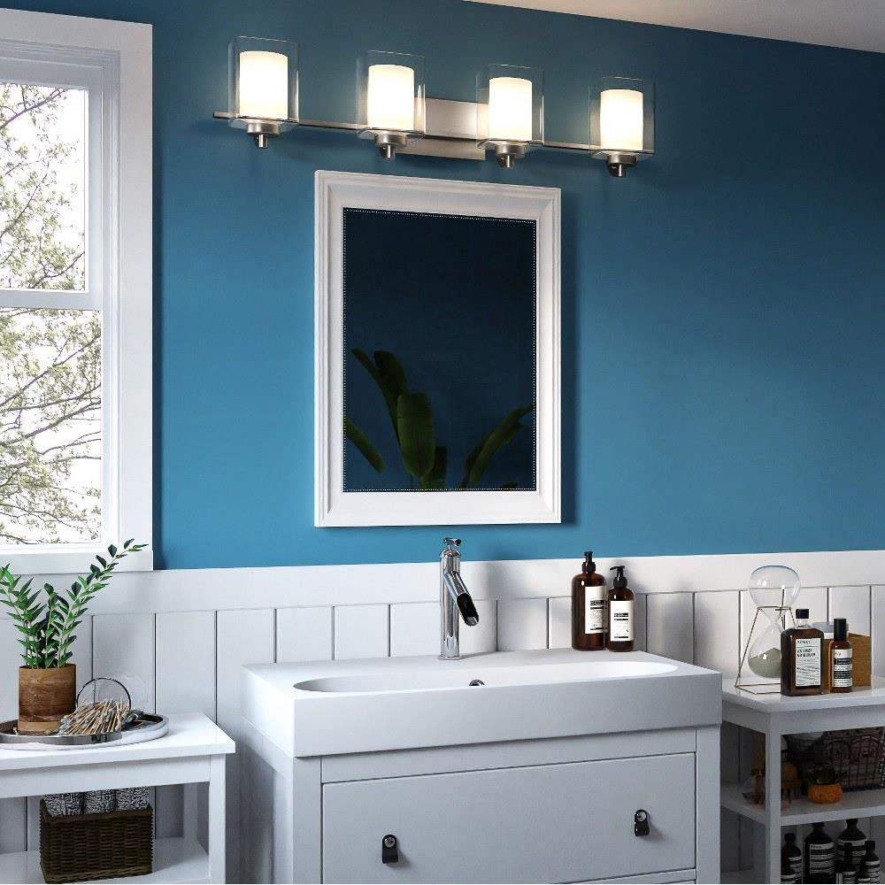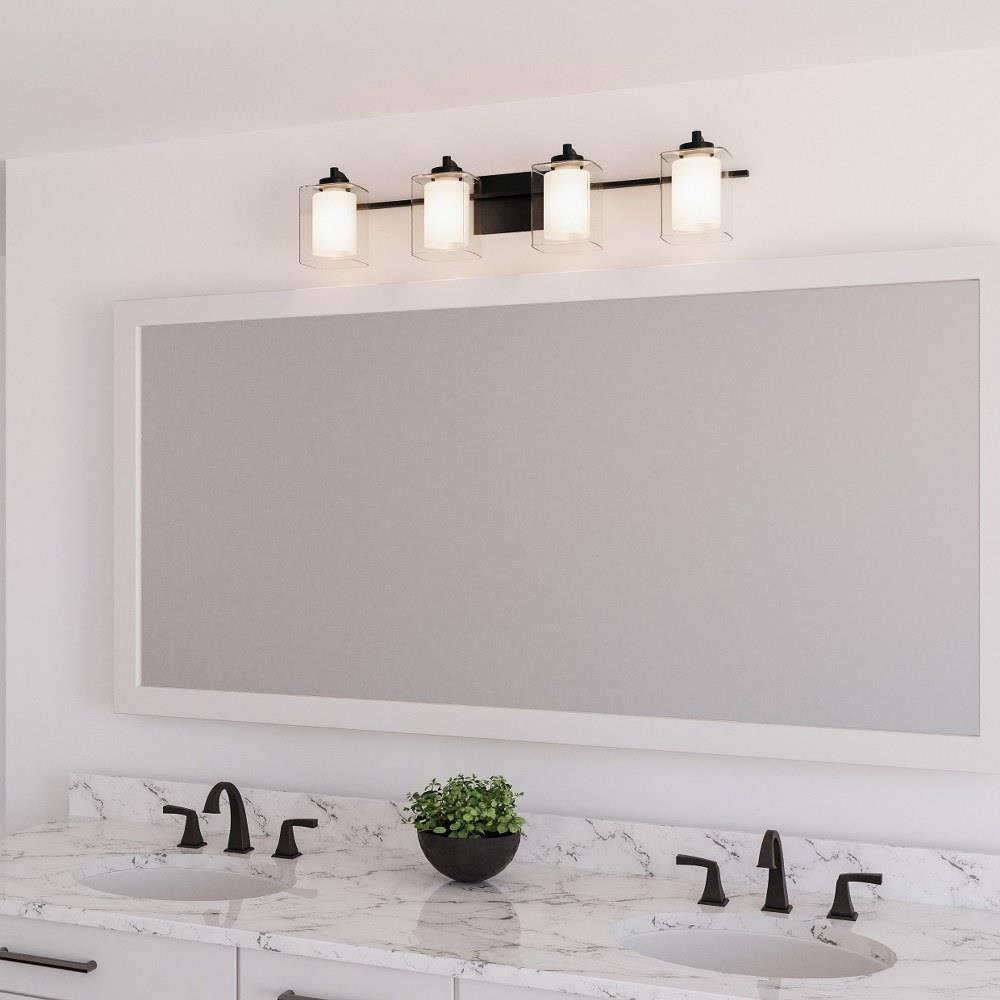 This modern posh wall sconce and vanity light collection features a simplistic design with four classic finish options: choose from brushed nickel, polished chrome, matte black or western bronze. The inner heavy glass is sand blasted inside and encased within outer clear glass shades for a sophisticated and stunning look. This unique illumination effect provides a spa-like illumination, creating a perfect home bathroom ambiance. Install Kolt with shades facing up or down to customize to your desired setting.