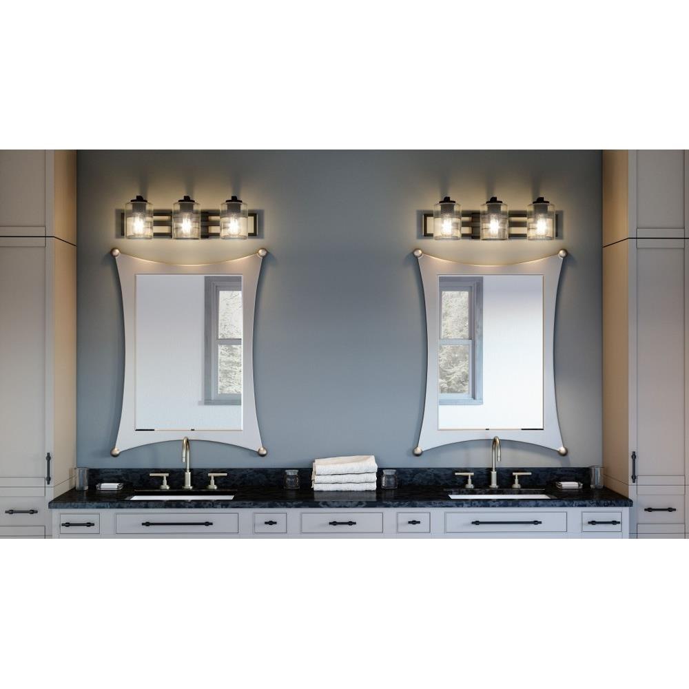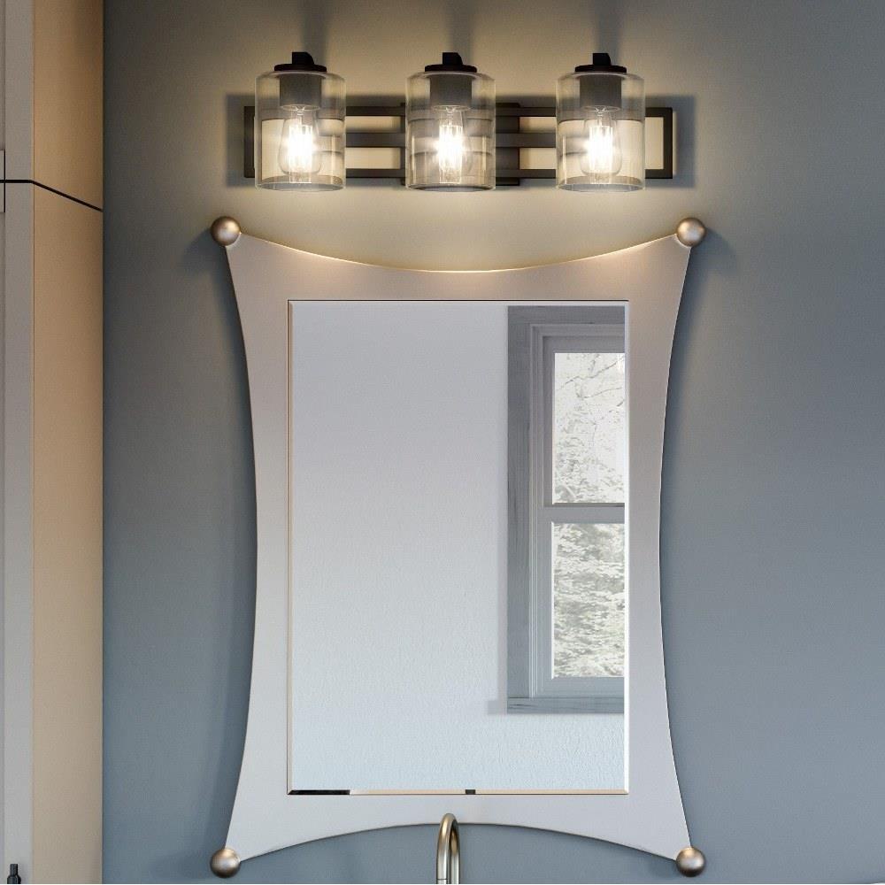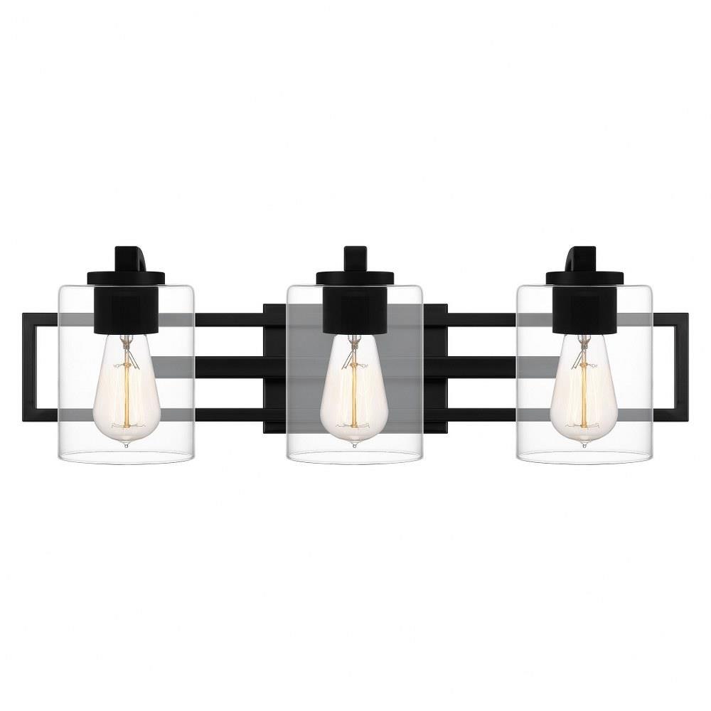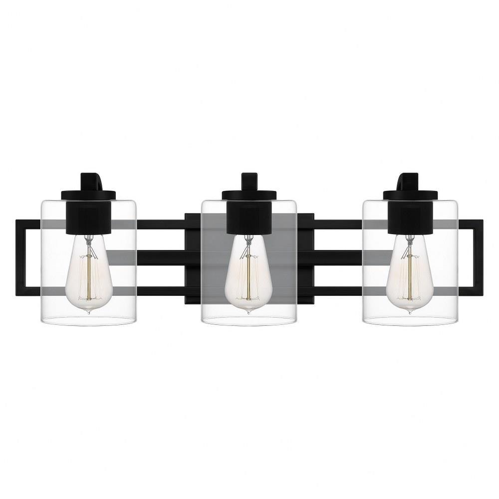 Pick your preference: The Landsdowne bath light can be configured up or down. With its striking shape and bold, Matte black finish, The light complements sleek and modern bath spaces. Choose either three or four bulbs, Depending on your lighting needs.Matte black finish complements sleek and modern bath spaces.Clear glass shades offer a bold and visually appealing contrast.Durable steel construction is built to last and offers a clean, Polished look.Complements transitional, Industrial, Contemporary, And modern design settings.Can be installed facing up or down to customize to your desired setting.Uses (3) 100-watt medium base bulb (not included).Fixture is dimmable when paired with dimming-compatible bulbs.