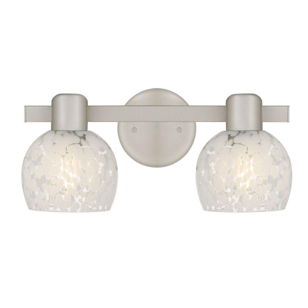 Softly luminous and artfully designed, the Layton vanity light brings a gentle elegance to your daily rituals. Its brushed nickel finish lends a sleek, modern touch, while the white dot glass shades glow like frosted petals kissed by morning light. Each shade is delicately speckled, creating a dappled effect that feels dreamy and handcrafted. Whether mounted above a mirror or lighting a serene space, Layton casts a warm, flattering glow—perfect for slow mornings, quiet evenings, and everything in between. It’s more than just lighting; it’s a moment of calm, captured in glass and metal.