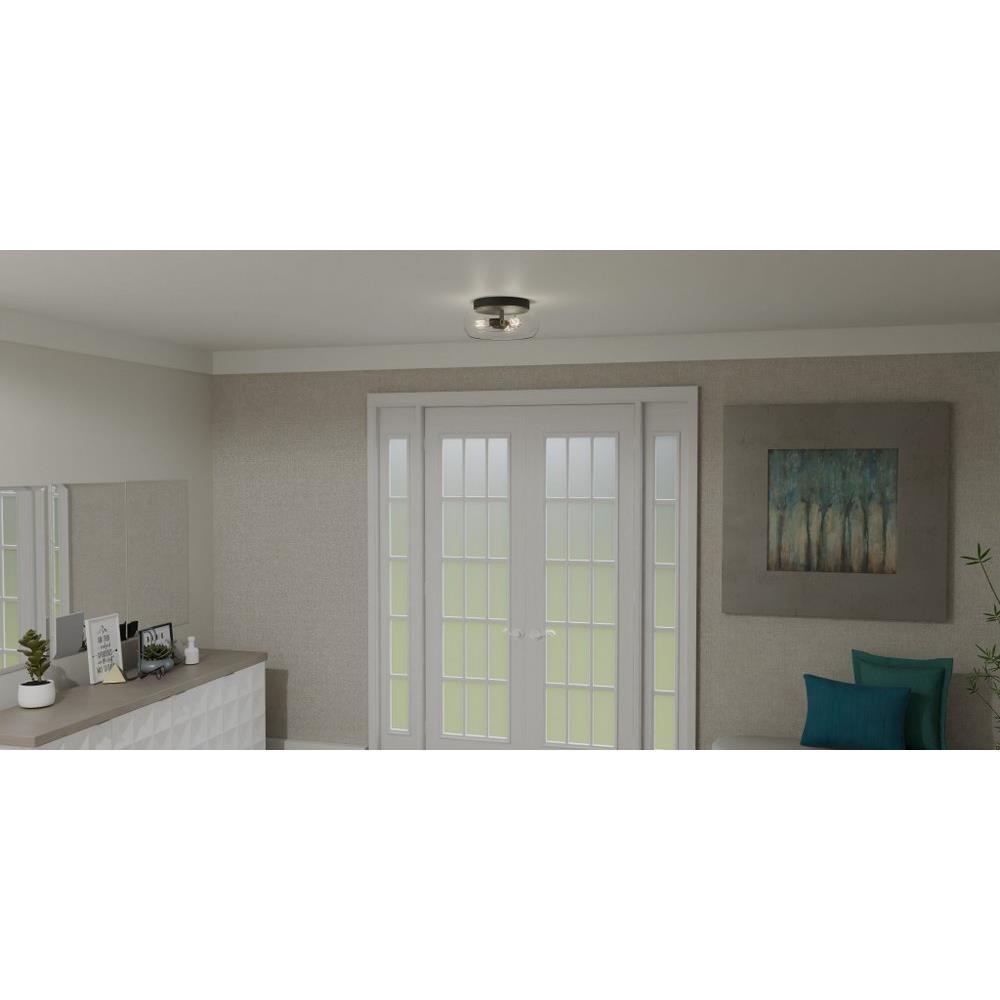 Clear optic glass shades feature a rippling, wave-like pattern that evokes serene movement in the Lucy collection. Clean lines and a matte black finish complete the look, making Lucy a perfect complement to transitional or coastal inspired settings. Lucy is available as a flush mount, pendant light, chandelier, and multiple sizes of bath light.