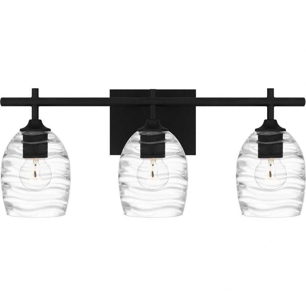 Clear optic glass shades feature a rippling, wave-like pattern that evokes serene movement in the Lucy bath light. Clean lines and a matte black finish complete the look, making Lucy a perfect complement to transitional or coastal inspired settings. Install with shades facing up or down - whichever best suits your preference.