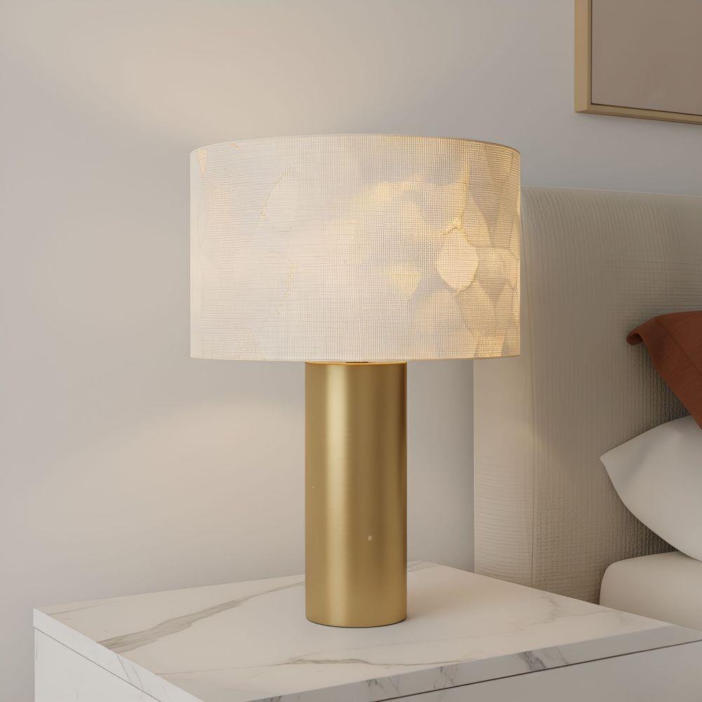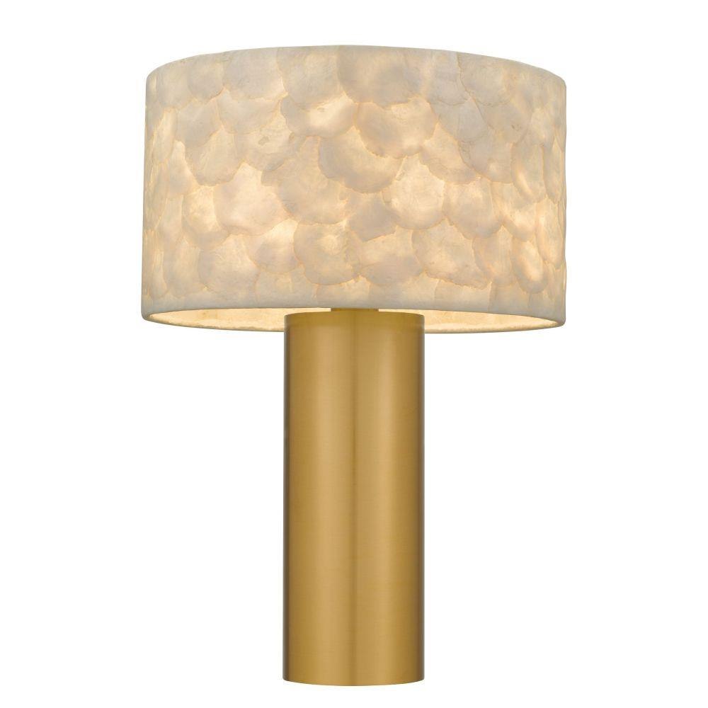 The Leland Table Lamp is a love letter to timeless elegance and coastal serenity. Its cylindrical base, wrapped in brushed gold, rises like a sunbeam—sleek, radiant, and warm to the eye. Topping this golden column is a shade crafted from delicate Capiz shells, each hand-placed to create a shimmering mosaic that dances with the light. As the lamp glows, the translucent shell shade softly diffuses the light, casting a gentle, enchanting glow reminiscent of moonlight on water. Whether perched on a bedside table or gracing a quiet corner, the Leland invites calm, comfort, and a whisper of romance into any space.