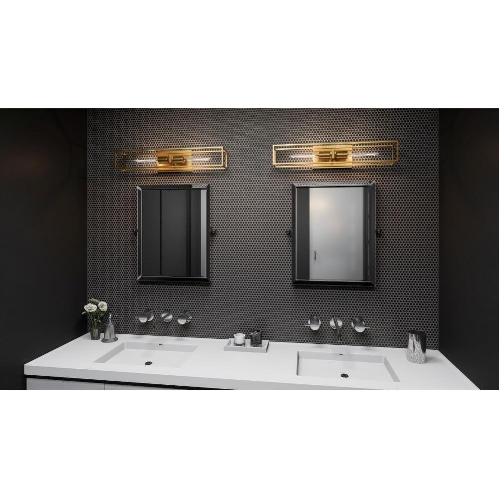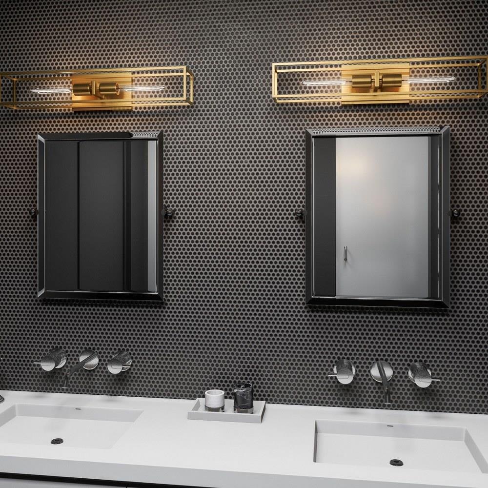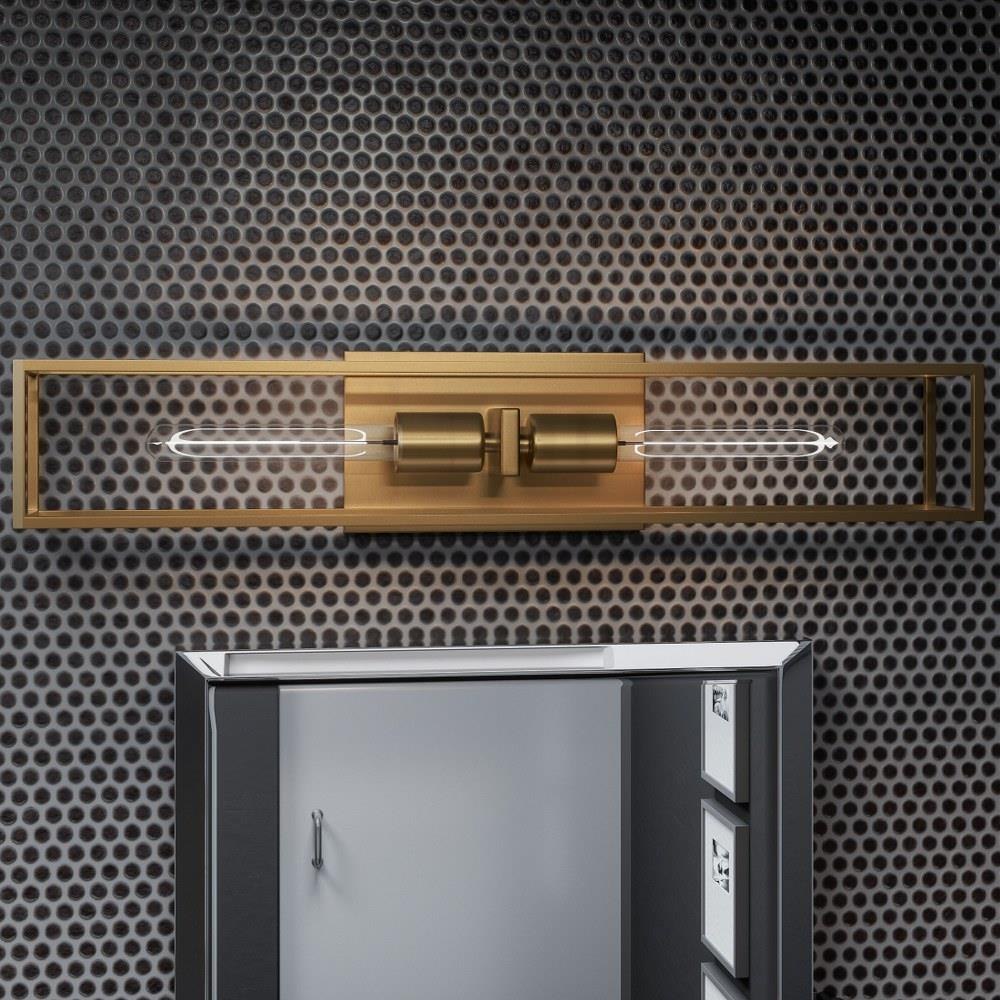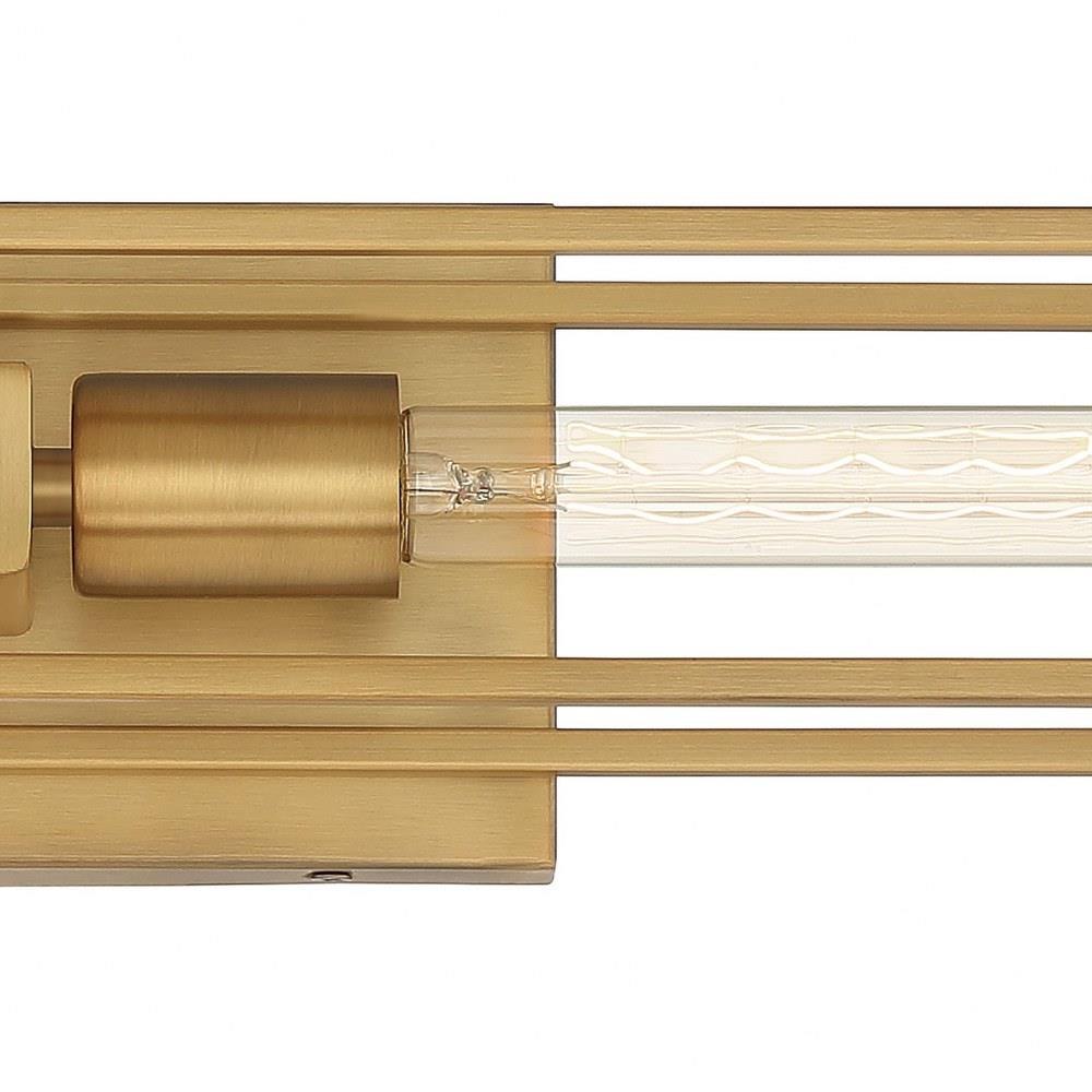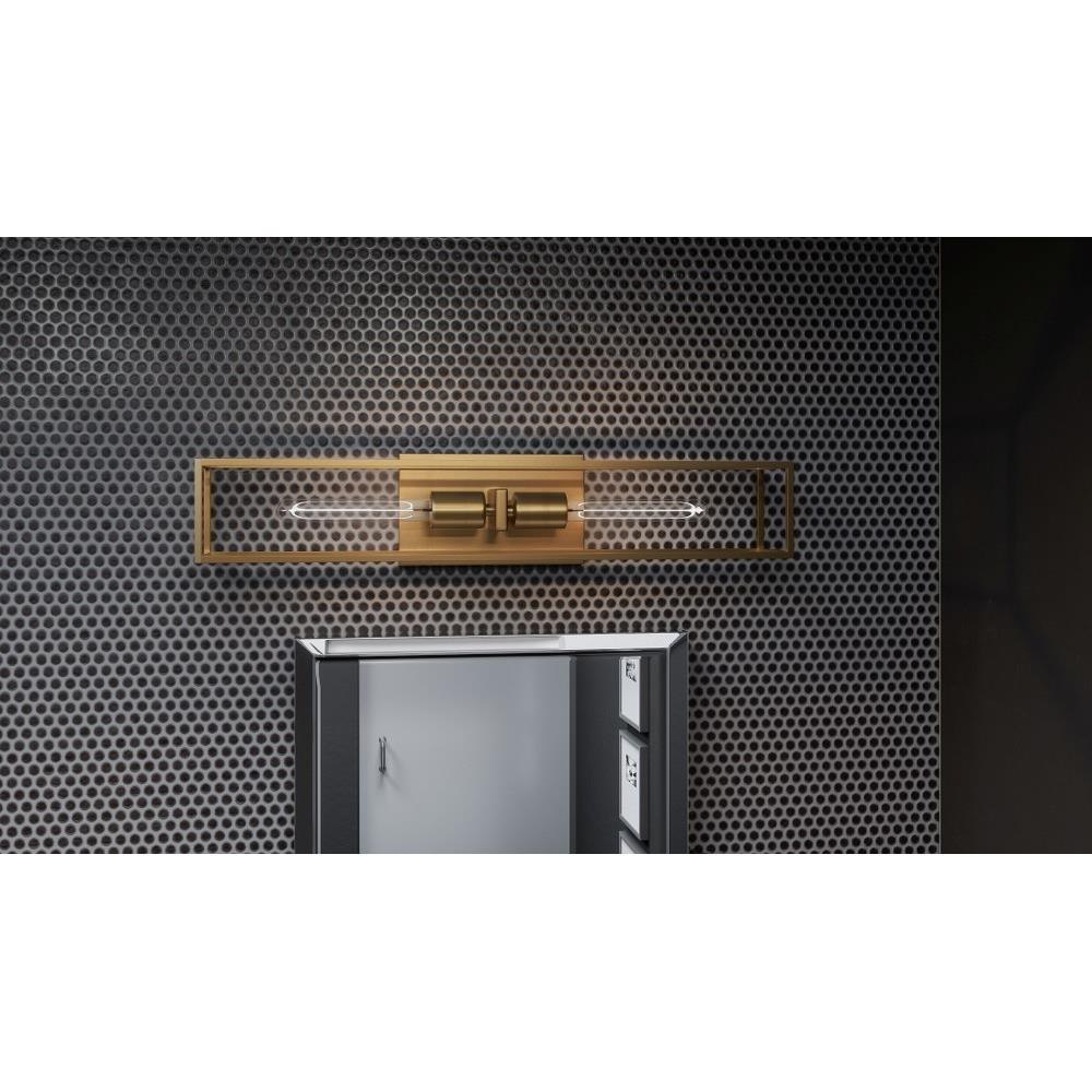 An oblong glass bulb is the perfect companion to the Leighton style, a smart and structural sconce in weathered brass. The square backplate sets the tone for plentiful angular shapes. Place beside a bed or sofa to illuminate a space and add sculptural flair, whether on or off.4.75" H 24.00" W 4.00" L, Bulb Type MED BASE A19, Bulb Qty 2, Base Finish WS - Weathered Brass, Item Weight 3.30, BP Height In 4.75, BP Width In 8.00, Product Design Style: Transitional Product Finish: Brass Product Electrical: 2 x 100w Medium Base Product Warranty: Product Warranty: Indoor Lighting Fixtures-Electrical Components [1 Year], Integrated LED (LED Bulbs Excluded)[5 Years], Finish[1 Year]; Outdoor Lighting Fixtures-Electrical Wiring & Sockets [1 Year], Integrated LED (LED Bulbs Excluded)[5 Years], "Armour" Finish[5 Years], Finish[2 Years].