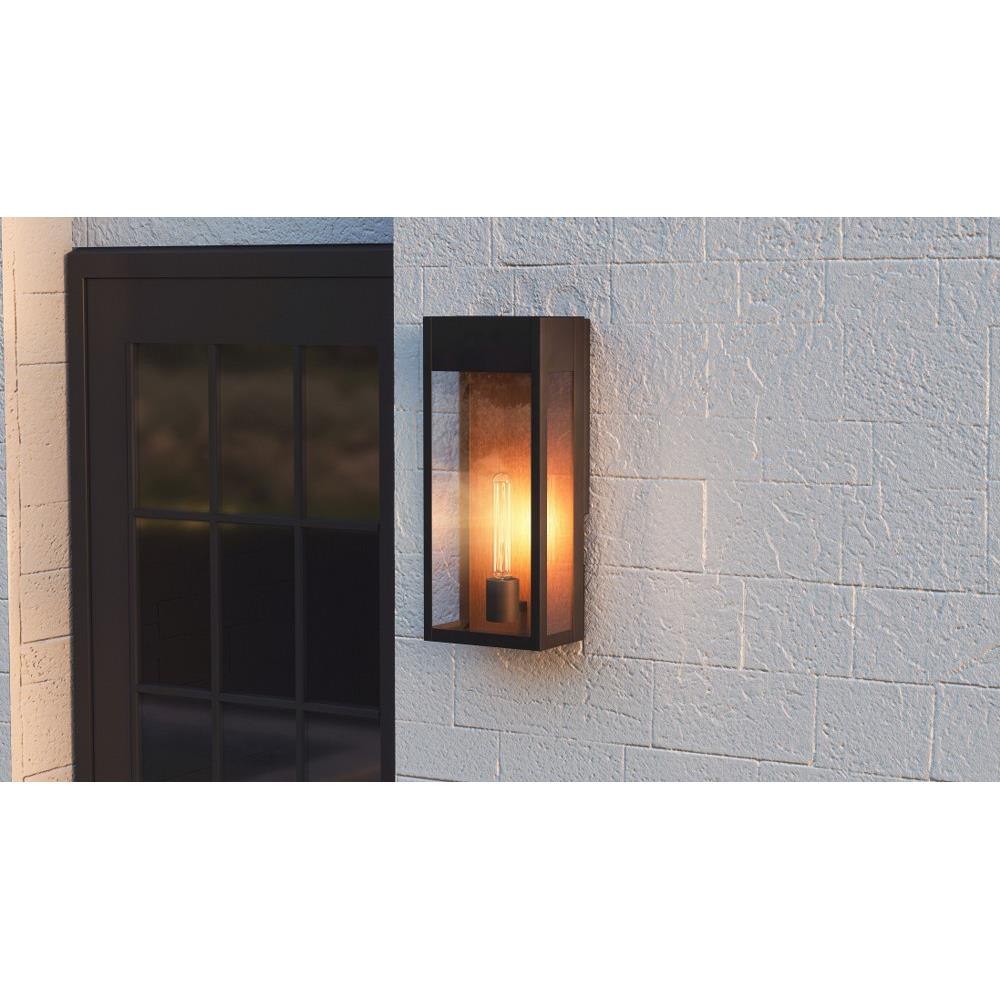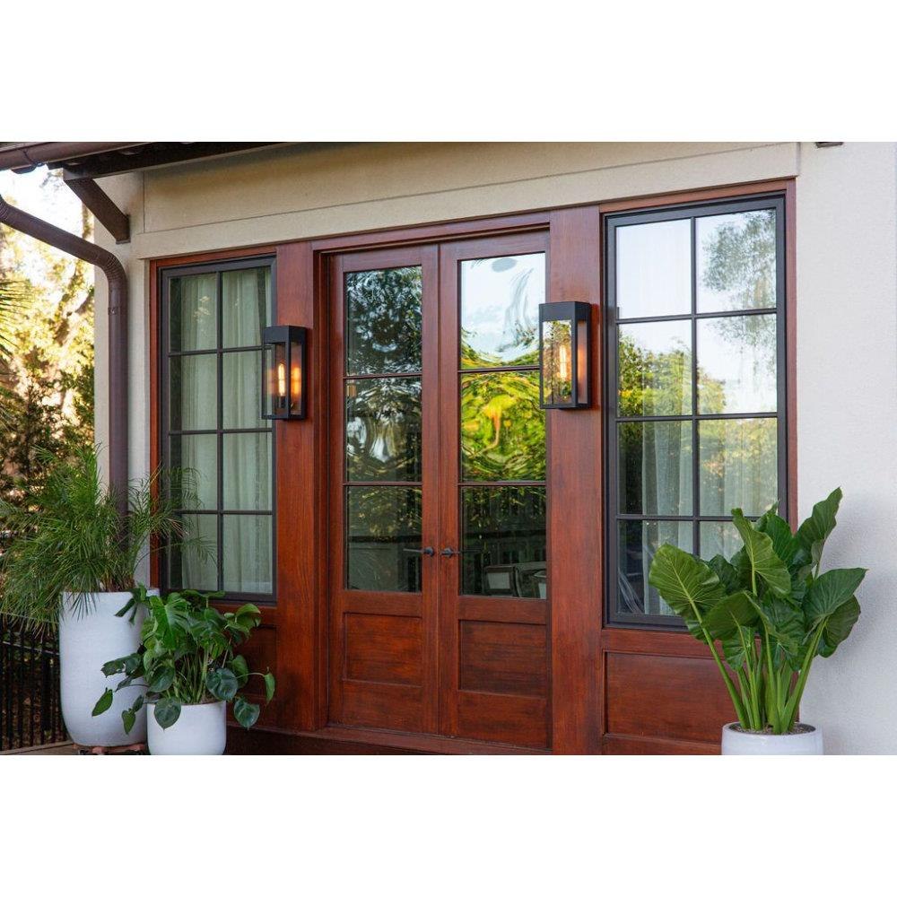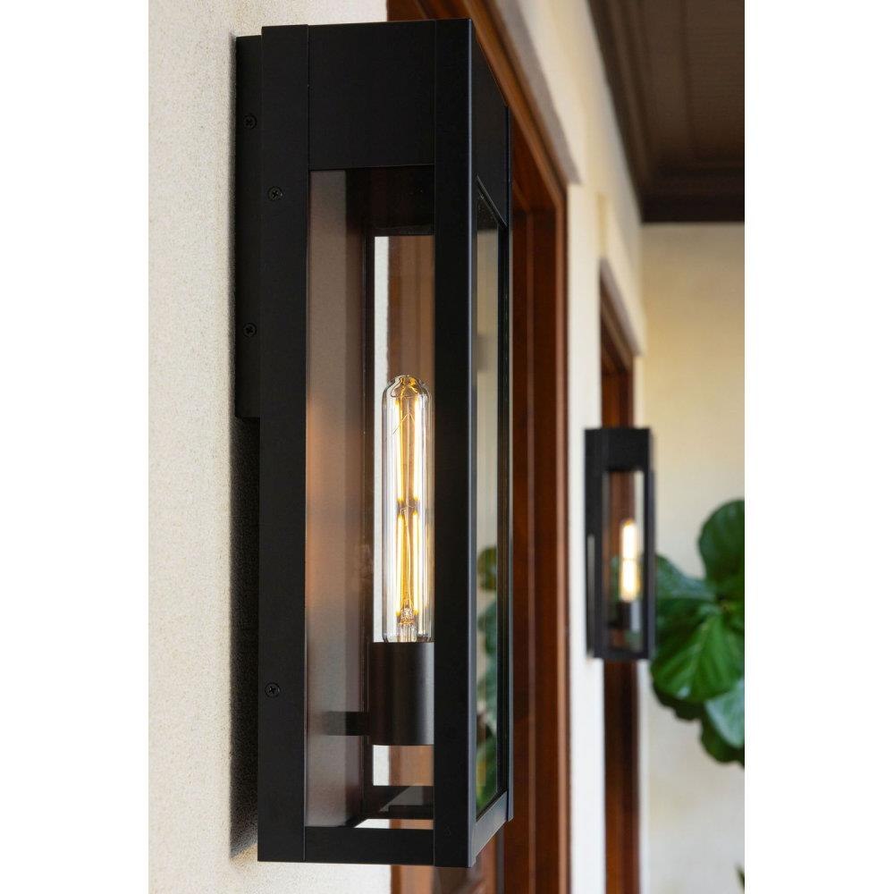 Create a lasting impression with Maren outdoor wall lanterns. A rectangular Matte Black frame incorporates mixed metal elements for a mixture of traditional and industrial styles. Clear glass panels highlight an exposed light source - use vintage light bulbs for the full effect. Matte black finish Clear glass panels Durable aluminum construction Uses (1) 100-watt medium base bulb (sold separately) Ideal for traditional, classic, industrial settings ETL Listed for use in wet locations Includes all required hardware and instructions for easy installation.