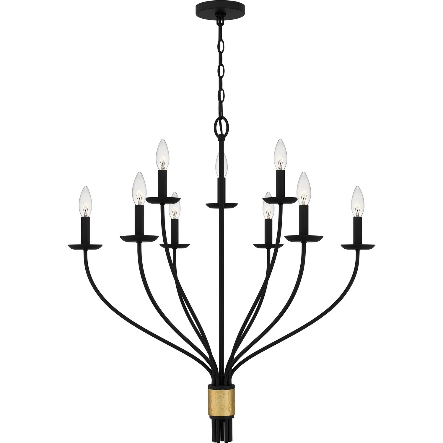 Matte Black Nine Light Chandelier from the Margaret Collection