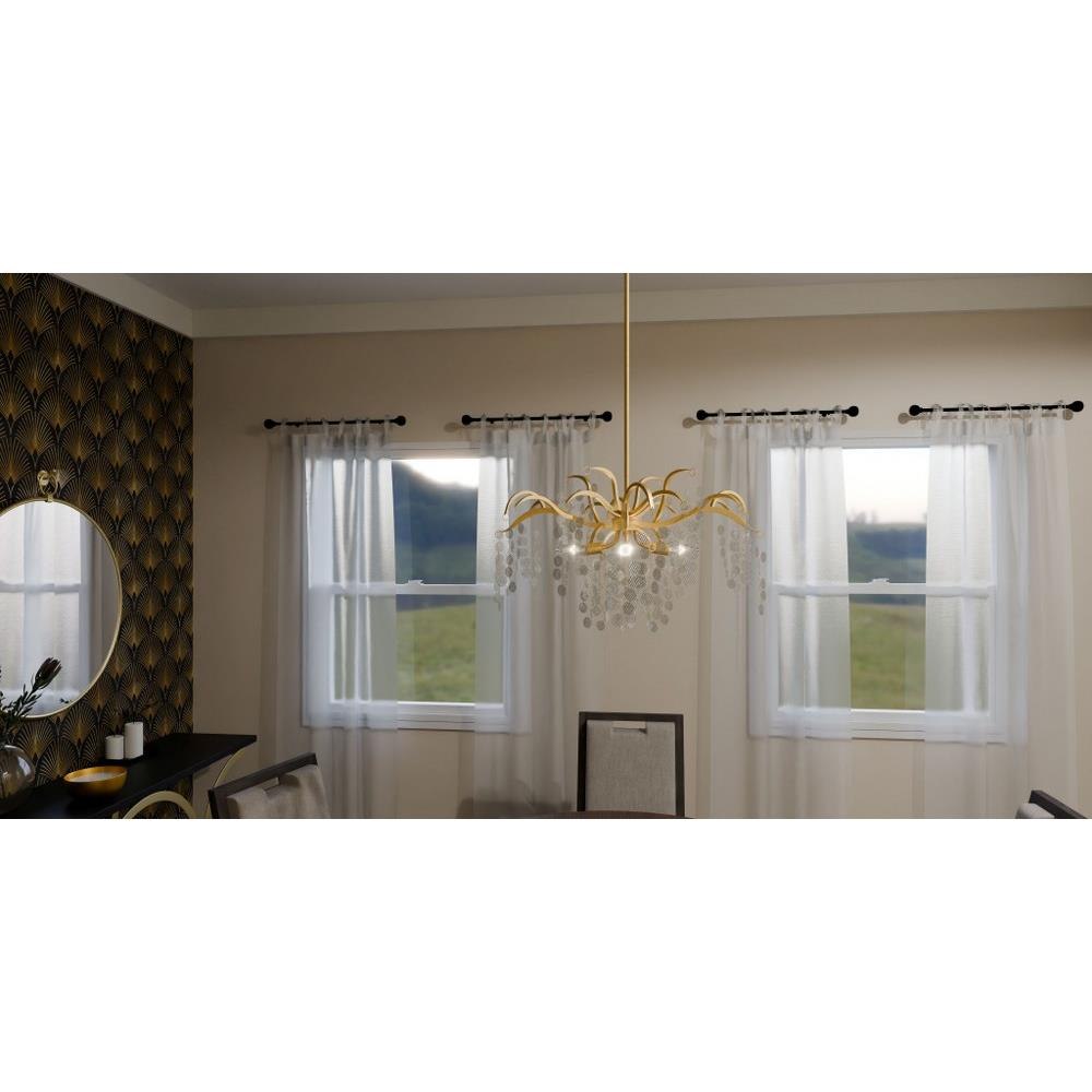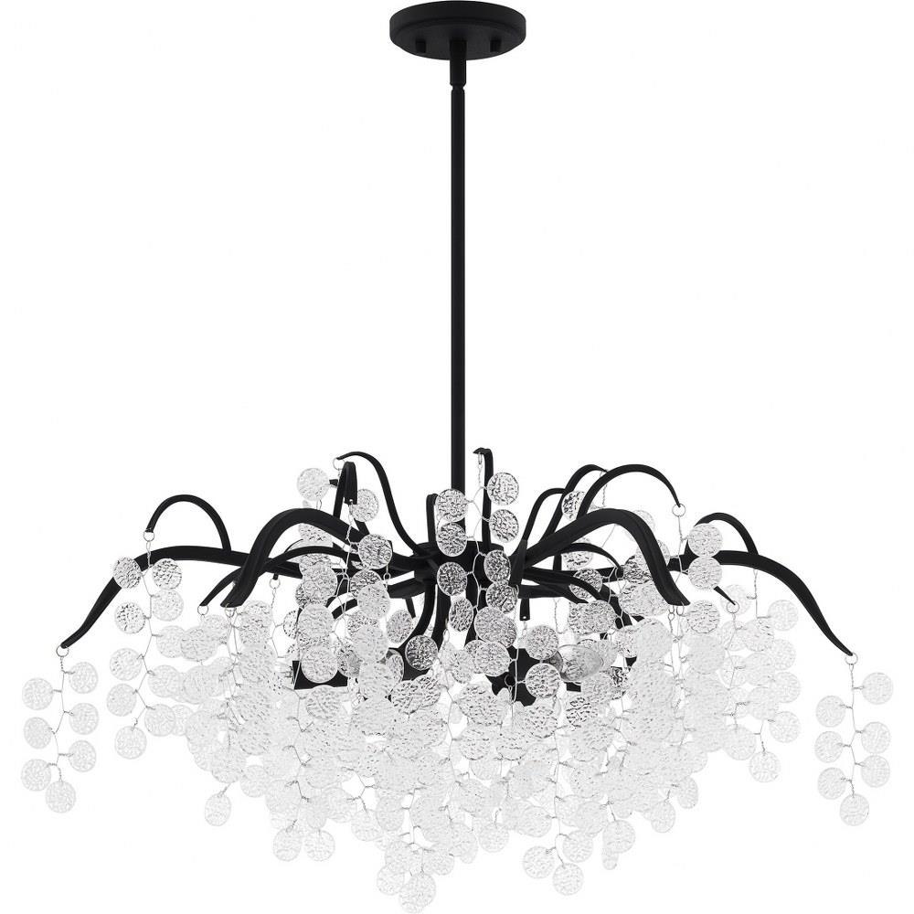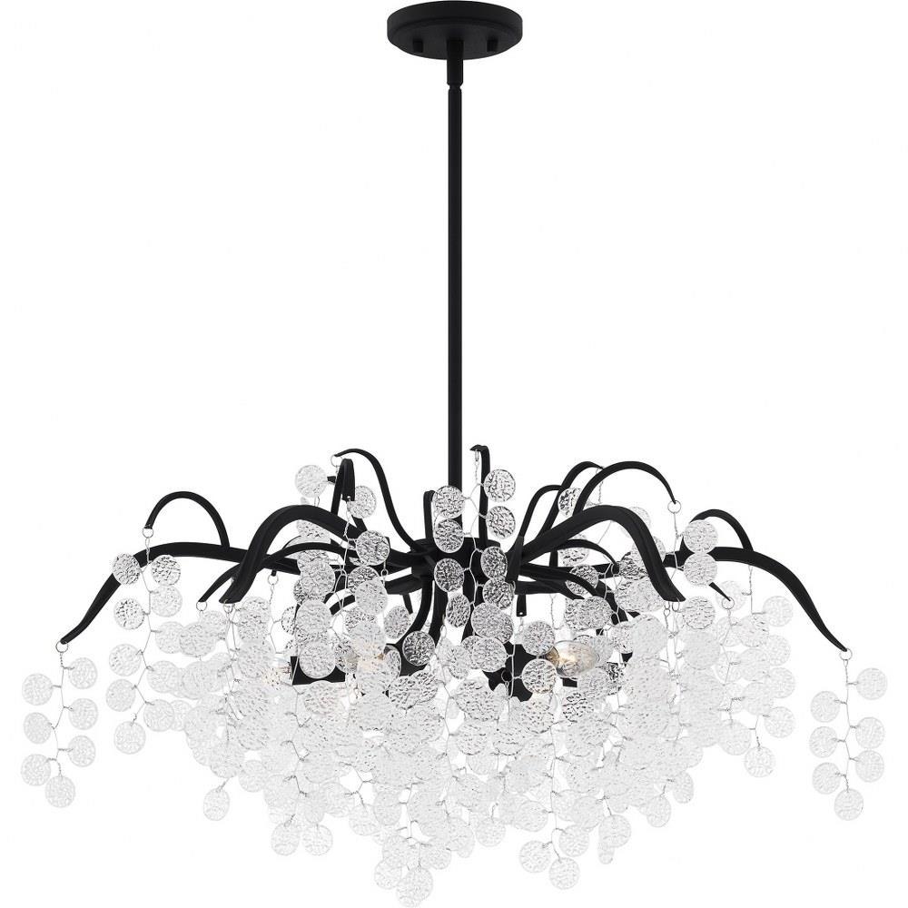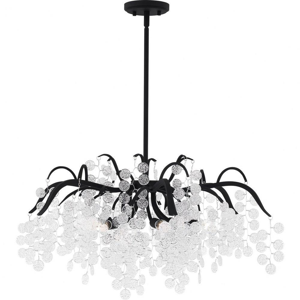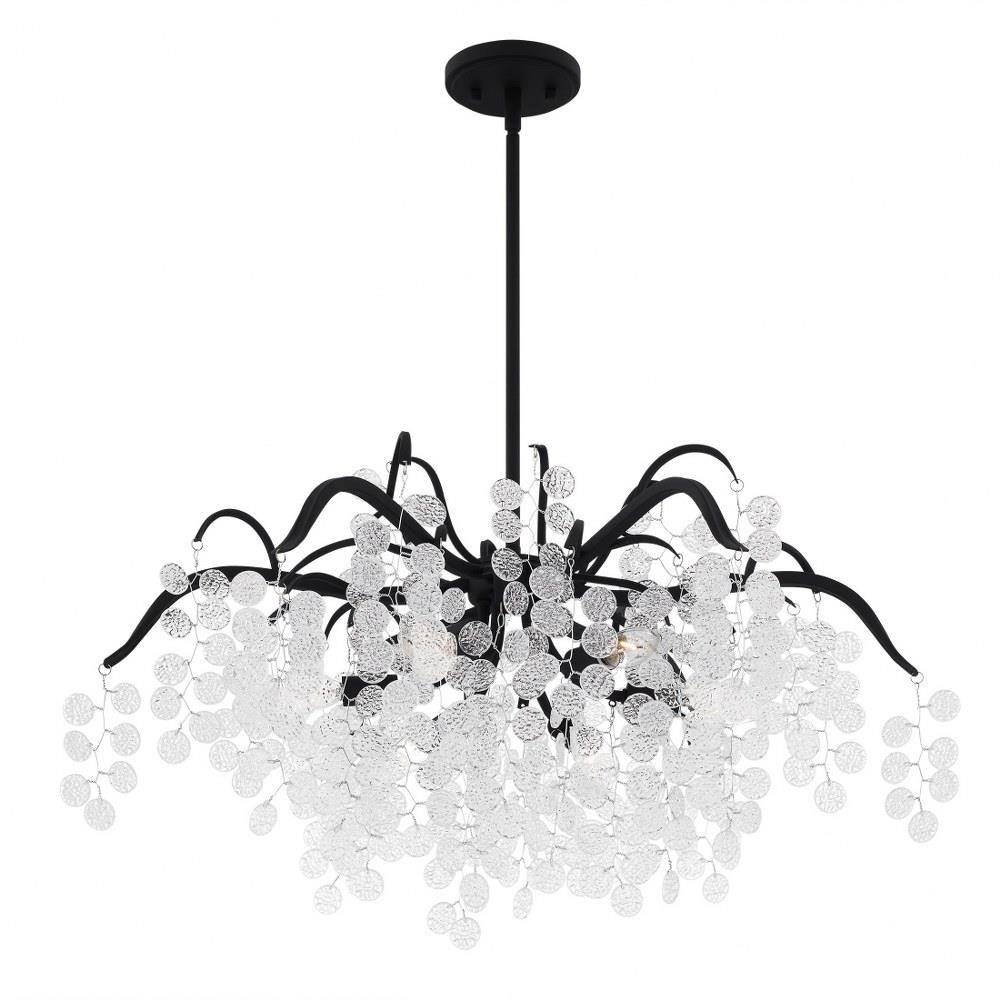 The Maple collection takes a fun and glamorous approach to traditional lighting design. Clear textured glass accents hang beautifully from delicate wires, complimented by your choice of earth black or gold leaf finish. Choose from a pendant light, semi-flush mount, or chandelier to brighten up your home in style.