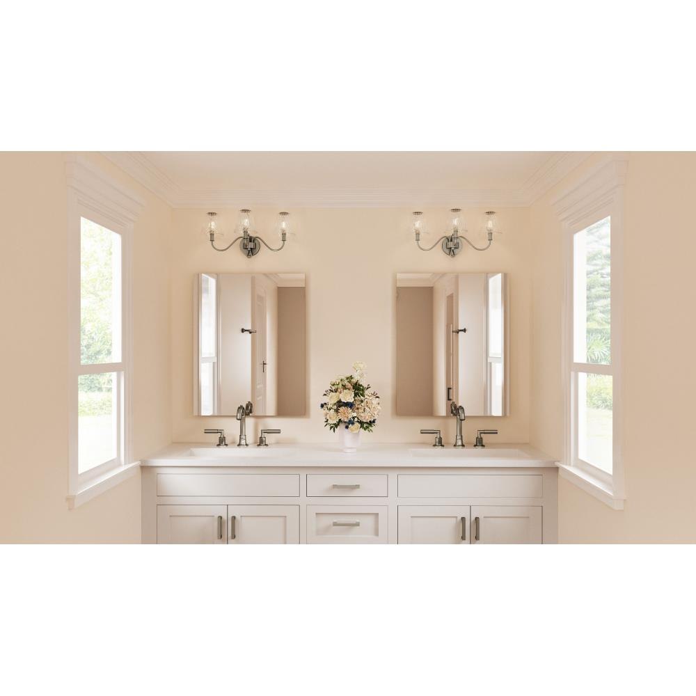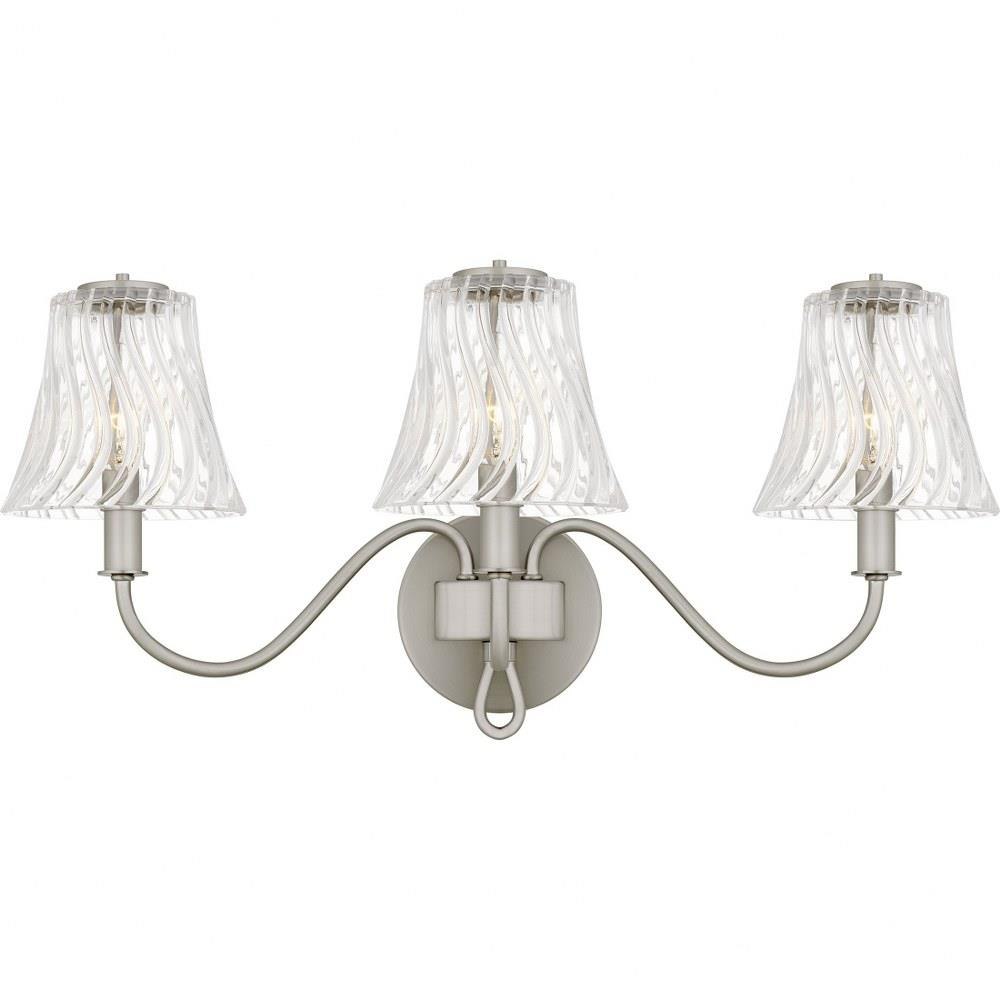 With its traditional styling and clean lines, McKinney is a perfect addition to any bathroom vanity setting. Choose from a brushed nickel finish with clear swirl glass or a matte black finish with etched swirl glass. The glass shades feature a fun twist design, adding a touch of texture and creating a captivating focal point. McKinney is available in multiple size options, allowing you to elevate any bathroom space with ease.