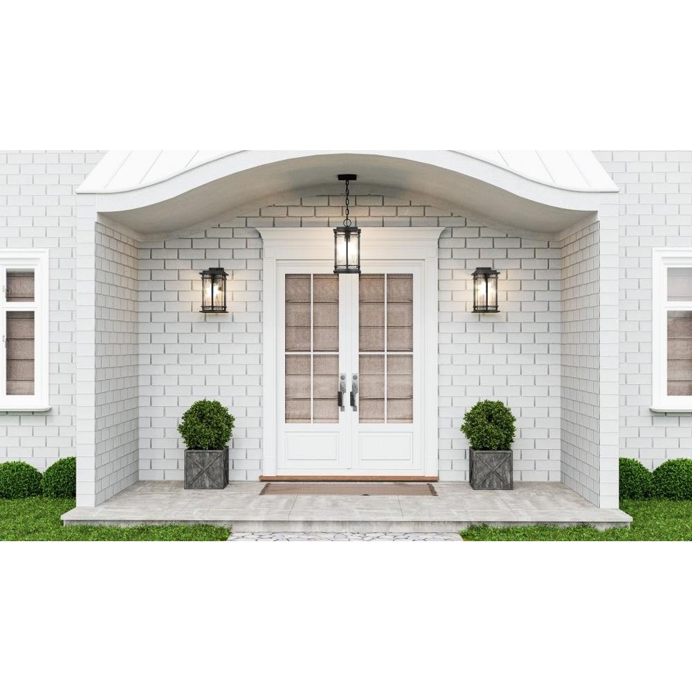 Enjoy major visual intrigue with the McAlister collection. With its earth black finish and clear textured glass panels, This style delivers on patina and texture at once. The chain suspension makes it a perfect addition to a covered porch or portico.Earth black finish adds a subtle touch of patina.Clear textured glass panels add visual intrigue and style.Durable aluminum construction is built to last and offers a clean, Polished look.Use in a variety of interior and exterior settings - ideal for transitional, Coastal, And industrially styled homes.Install fixture facing downward for optimal light output.Uses (1) 100-watt medium base bulb (not included).Fixture is dimmable when paired with dimming-compatible bulbs.