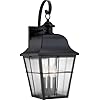 • Quoizel Millhouse Outdoor Wall Lantern, 22 Inch, 3-Light Mystic Black Traditional Wall Sconce, Clear Seeded Glass, 60W, Exterior Wall Lantern Fixture, Outside Lights for Patio, Porch, Garage or Yard