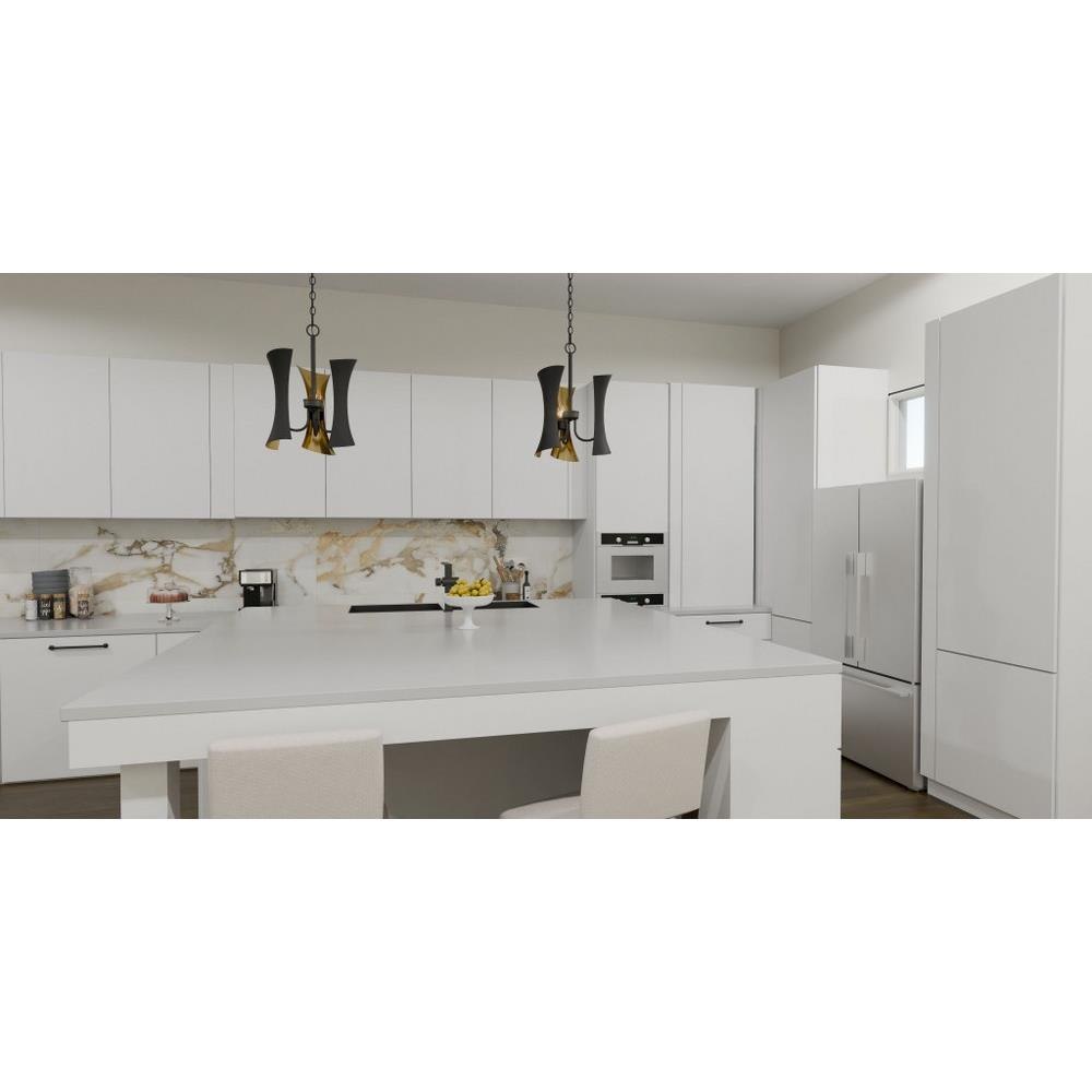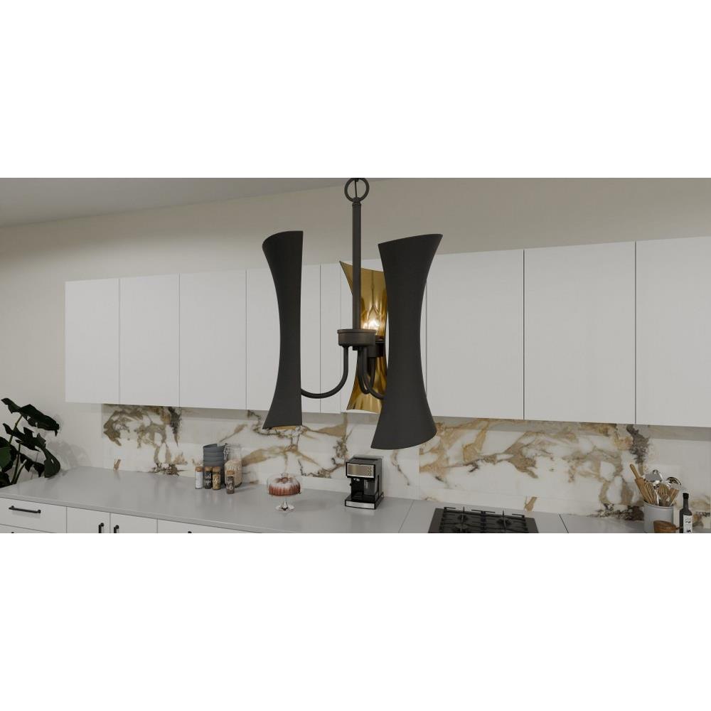 Black and gold create a beautiful and modern pairing in Myla. The unique design features geometric metal panels that are matte black on the outside and gold on the inside for a glamorous effect. Available as a chandelier or pendant light, Myla makes a one-of-a-kind statement in a variety of interior settings.