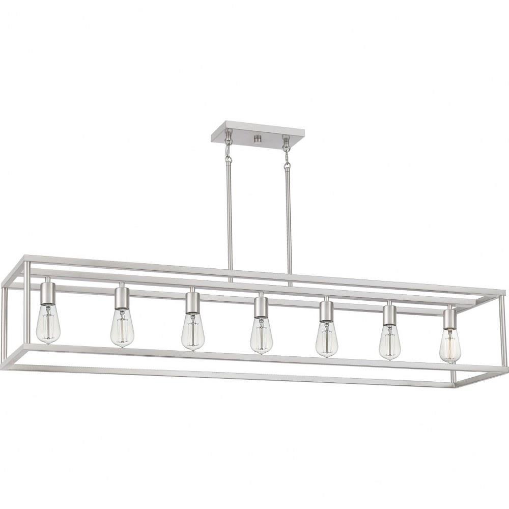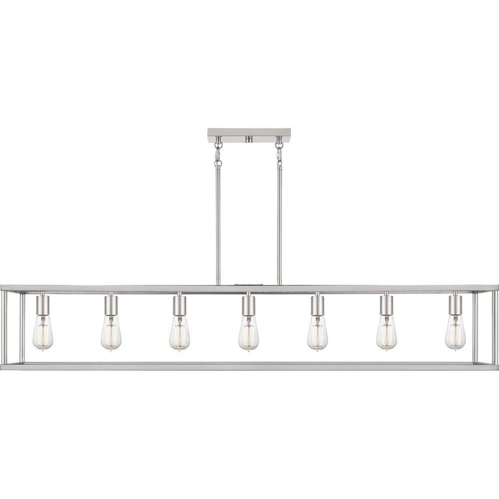 The New Harbor is completely unadorned for an open, airy feel. The brushed nickel finish complements many decor styles and the Edison- style filament bulbs add the perfect vintage touch to this understated collection. 9.75" H 52.00" W 12.00" LBulb Type MED BASE A19Bulb Qty 7Base Finish BN - Brushed NickelItem Weight 20.58.