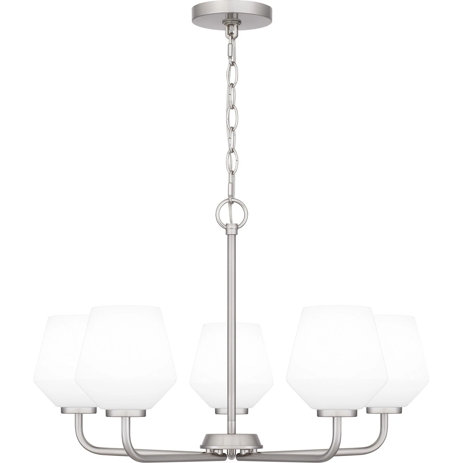 Quoizel Nielson 5 Light Chandelier, Brushed Nickel/Opal Etched - NIE5025BN