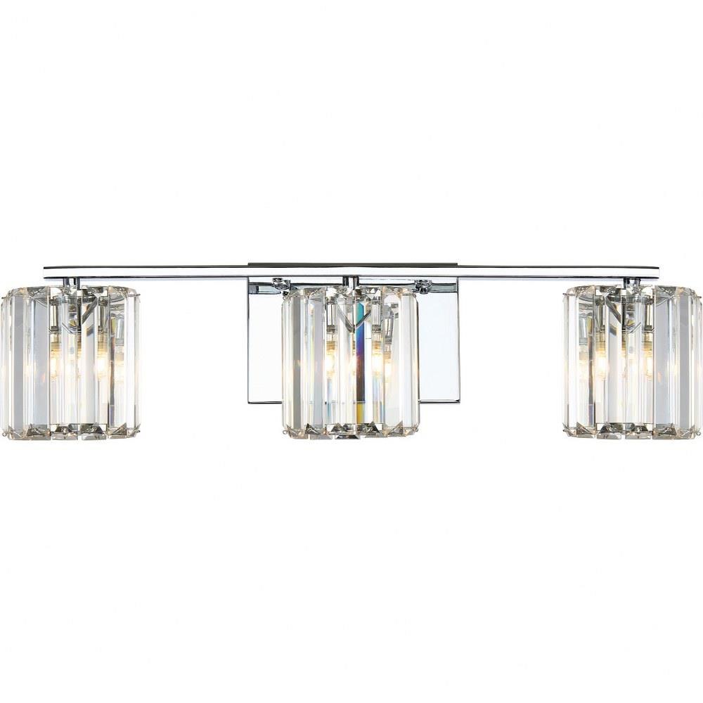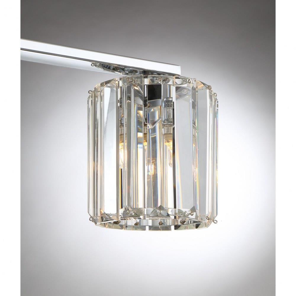 The Divine Collection is exquisite sophistication, a true statement of the Platinum Collection by Quoizel. The simple backplate gleams in Polished Chrome and reflects every cut and sparkle of the crystal-glass. The refractive glass is arranged in slats pinned top and bottom to form a shade around the LED bulb.