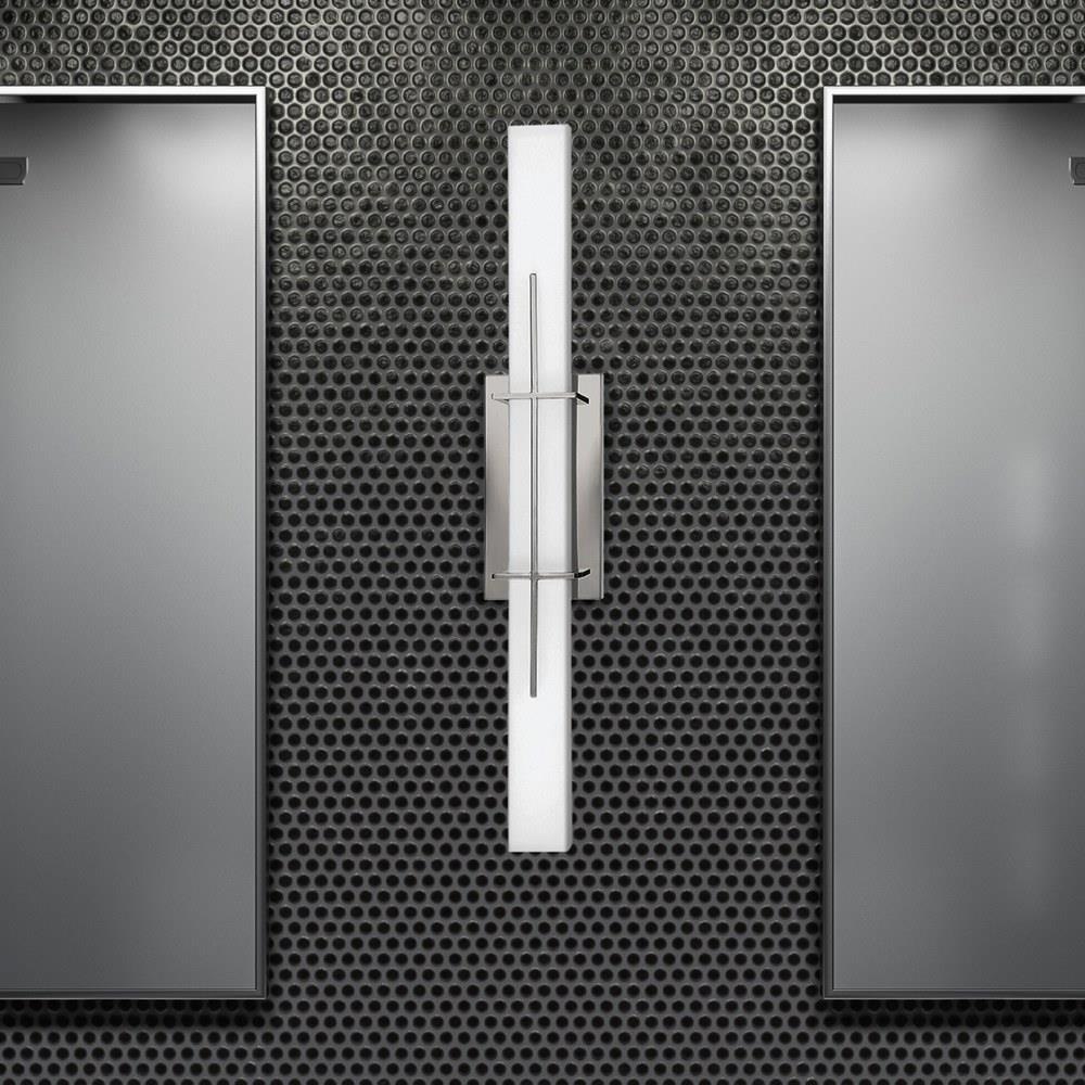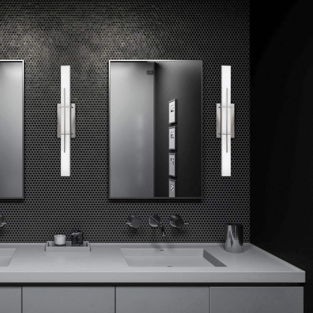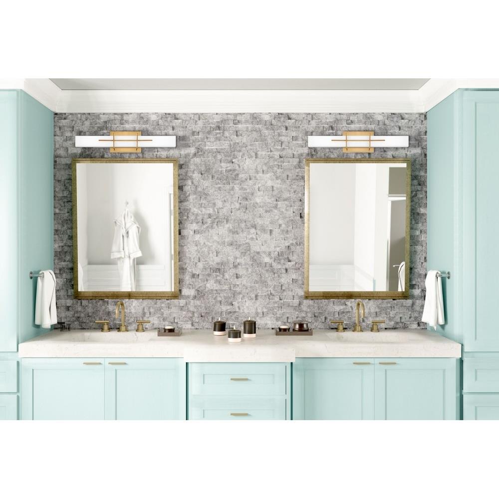The Gemini collection is the perfect updated look for your bathroom. The modern style of this fixture is available in an Aged Brass or Polished Chrome finish, and is paired with an opal etched glass shade. The integrated LED light source provides energy saving, long lasting performance, and is low maintenance.