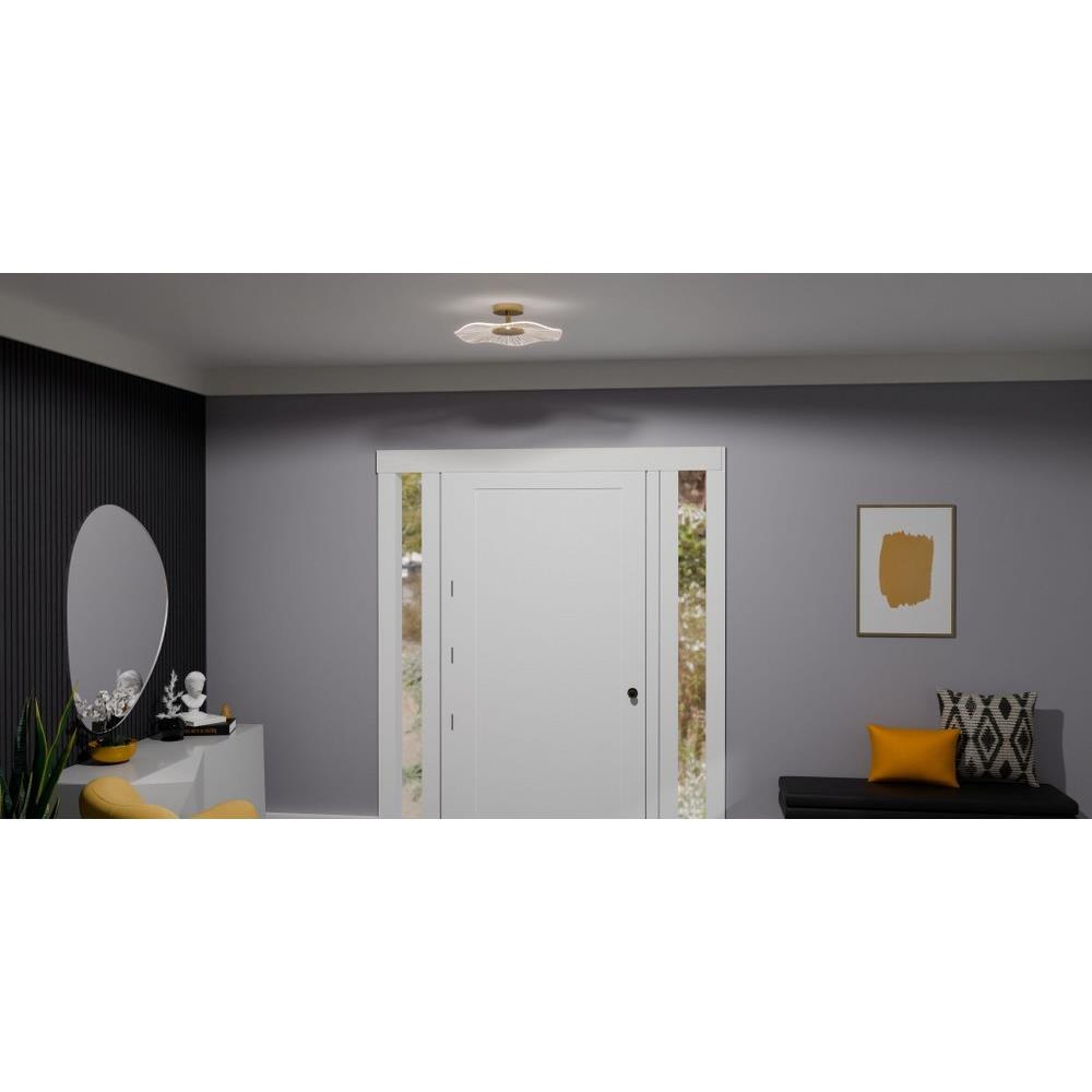 With a brushed gold finish and clear acrylic shade, the Ibis flush mount light offers a distinct and eye-catching design. Integrated LED lines flow from the center of design, casting a unique and beautiful pattern on the ceiling above . With its contemporary styling, Ibis is a perfect choice for any hallway, entryway, or bathroom.